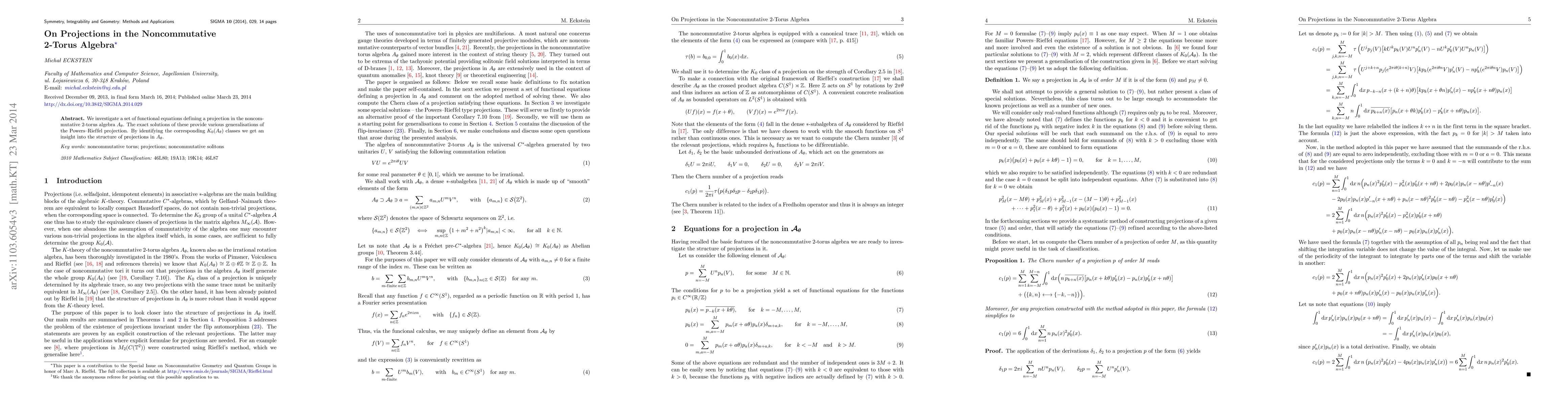 We investigate a set of functional equations defining a projection in the noncommutative 2-torus algebra $A_{\theta}$. The exact solutions of these provide various generalisations of the Powers-Rieffel projection. By identifying the corresponding $K_0(A_{\theta})$ classes we get an insight into the structure of projections in $A_{\theta}$.