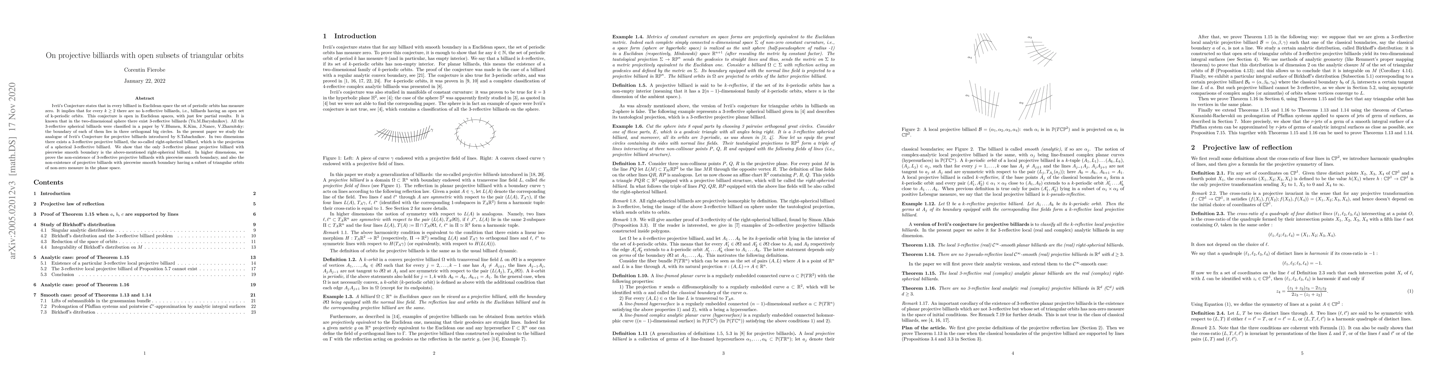 Ivrii's Conjecture states that in every billiard in Euclidean space the set of periodic orbits has measure zero. It implies that for every $k\geq2$ there are no k-reflective billiards, i.e., billiards having an open set of k-periodic orbits. This conjecture is open in Euclidean spaces, with just few partial results. It is known that in the two-dimensional sphere there exist 3-reflective billiards (Yu.M.Baryshnikov). All the 3-reflective spherical billiards were classified in a paper by V.Blumen, K.Kim, J.Nance, V.Zharnitsky: the boundary of each of them lies in three orthogonal big circles. In the present paper we study the analogue of Ivrii's Conjecture for projective billiards introduced by S.Tabachnikov. In two dimensions there exists a 3-reflective projective billiard, the so-called right-spherical billiard, which is the projection of a spherical 3-reflective billiard. We show that the only 3-reflective planar projective billiard with piecewise smooth boundary is the above-mentioned right-spherical billiard. In higher dimensions, we prove the non-existence of 3-reflective projective billiards with piecewise smooth boundary, and also the non-existence of projective billiards with piecewise smooth boundary having a subset of triangular orbits of non-zero measure in the phase space.