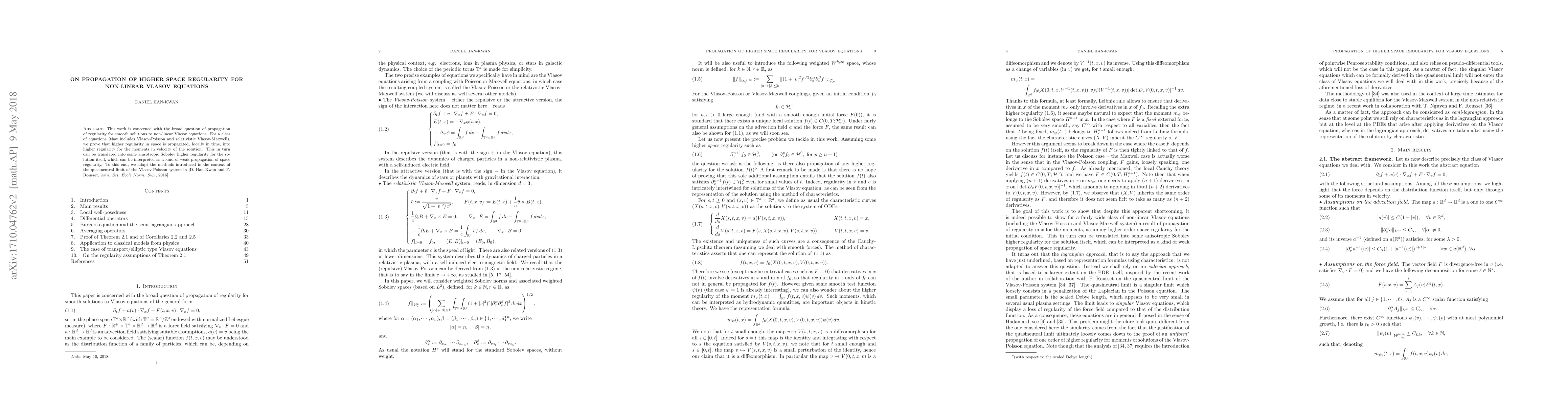 This paper proves that higher spatial regularity in solutions to non-linear Vlasov equations, including Vlasov-Poisson and relativistic Vlasov-Maxwell, propagates locally in time to higher regularity in velocity moments, leading to anisotropic Sobolev regularity for the solution itself. The methods are adapted from the quasineutral limit analysis of the Vlasov-Poisson system.