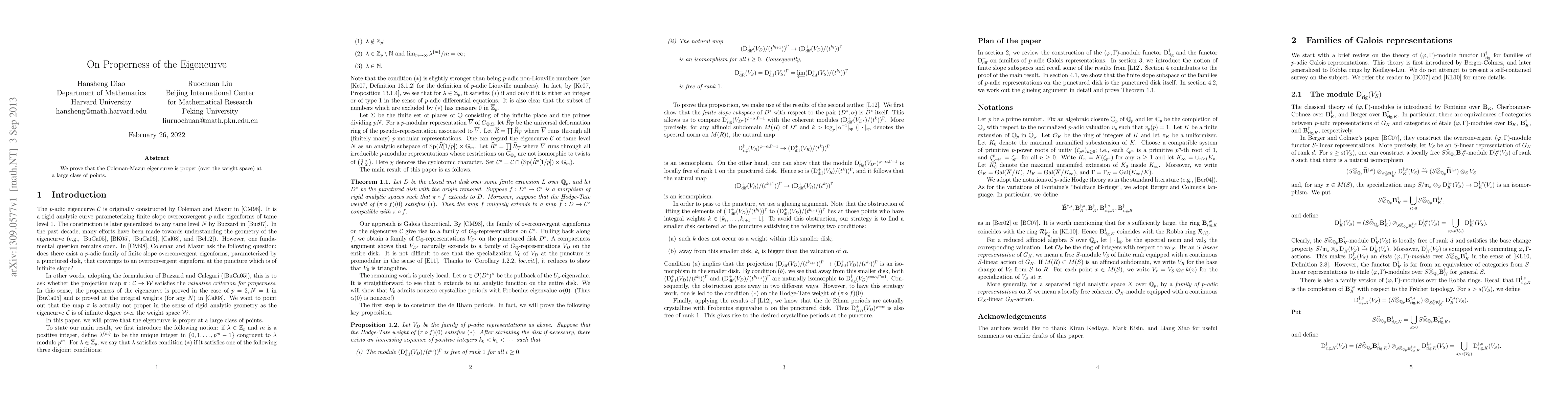 Summary: This paper demonstrates the properness of the Coleman-Mazur eigencurve over a significant class of points in the weight space, contributing to the understanding of its geometric properties.