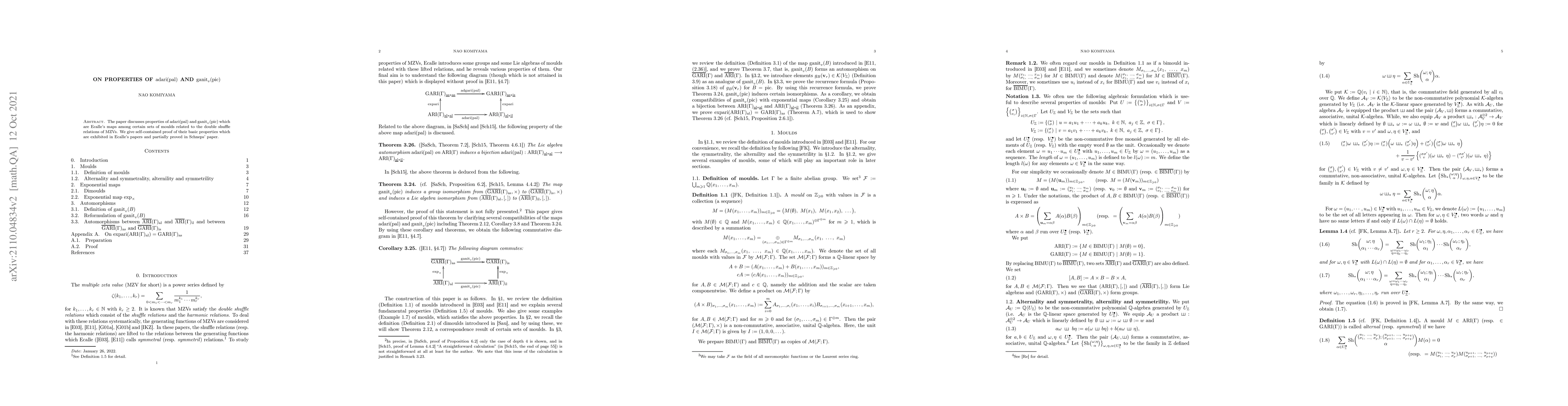 The paper discusses properties of adari(pal) and ganit(pic) which are Ecalle's maps among certain sets of moulds related to the double shuffle relations of MZVs. We give self-contained proof of their basic properties which are exhibited in Ecalle's papers and partially proved in Schneps' paper.