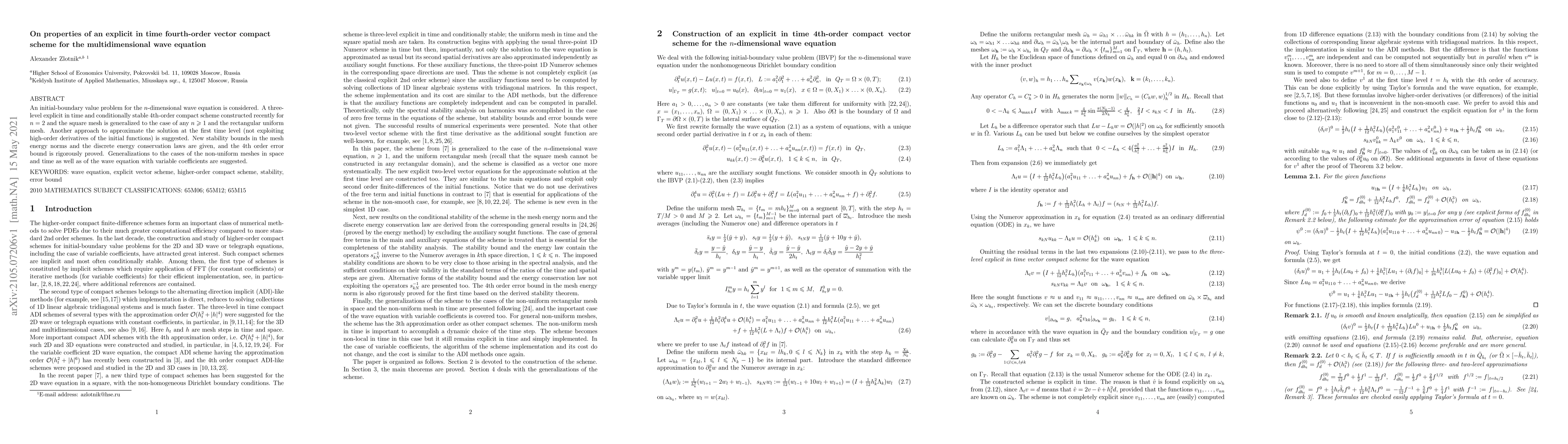 An initial-boundary value problem for the $n$-dimensional wave equation is considered. A three-level explicit in time and conditionally stable 4th-order compact scheme constructed recently for $n=2$ and the square mesh is generalized to the case of any $n\geq 1$ and the rectangular uniform mesh. Another approach to approximate the solution at the first time level (not exploiting high-order derivatives of the initial functions) is suggested. New stability bounds in the mesh energy norms and the discrete energy conservation laws are given, and the 4th order error bound is rigorously proved. Generalizations to the cases of the non-uniform meshes in space and time as well as of the wave equation with variable coefficients are suggested.