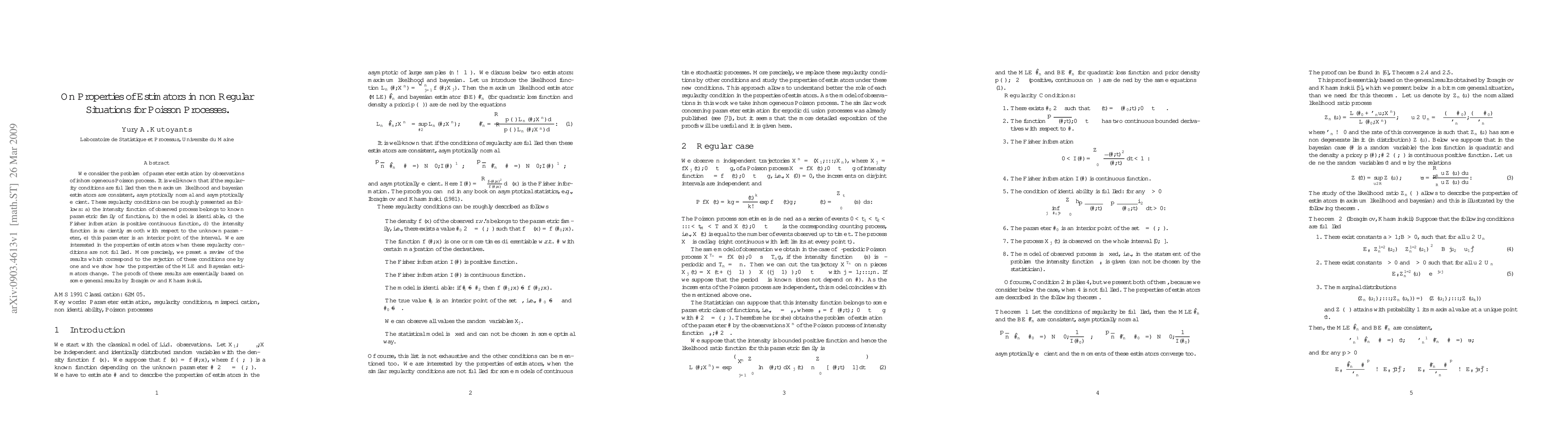 We consider the problem of parameter estimation by observations of inhomogeneous Poisson process. It is well-known that if the regularity conditions are fulfilled then the maximum likelihood and Bayesian estimators are consistent, asymptotically normal and asymptotically efficient. These regularity conditions can be roughly presented as follows: a) the intensity function of observed process belongs to known parametric family of functions, b) the model is identifiable, c) the Fisher information is positive continuous function, d) the intensity function is sufficiently smooth with respect to the unknown parameter, e) this parameter is an interior point of the interval. We are interested in the properties of estimators when these regularity conditions are not fulfilled. More precisely, we preset a review of the results which correspond to the rejection of these conditions one by one and we show how the properties of the MLE and Bayesian estimators change. The proofs of these results are essentially based on some general results by Ibragimov and Khasminskii.