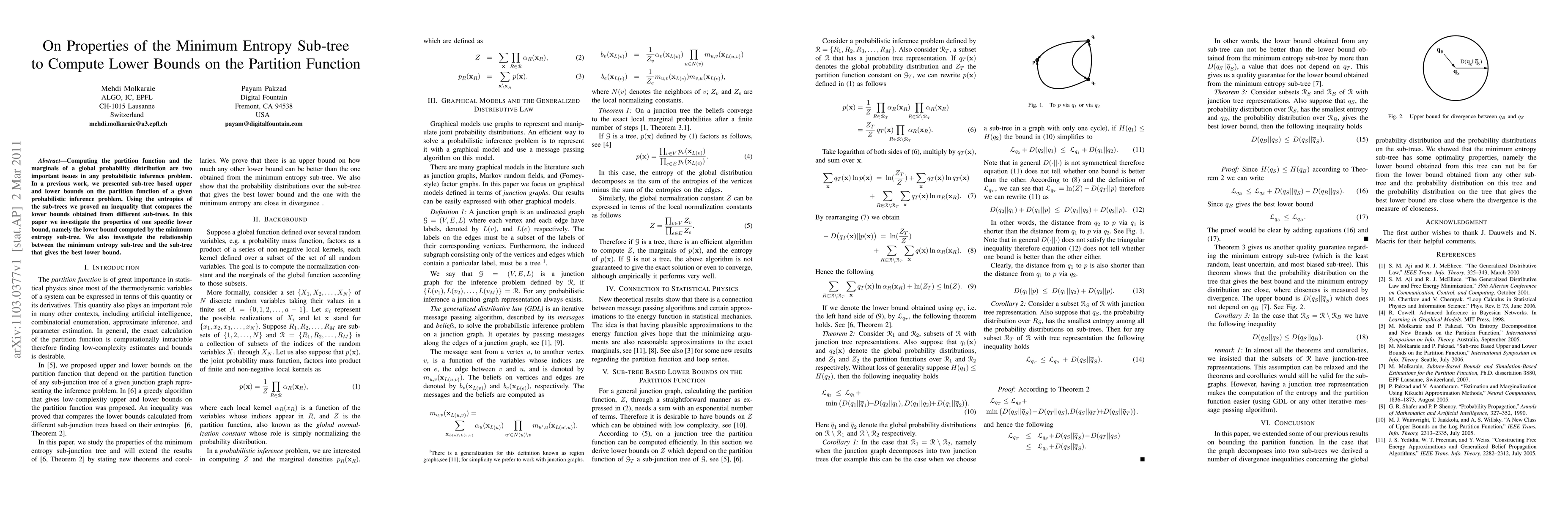 This paper explores the properties of the minimum entropy sub-tree used to compute lower bounds on the partition function in probabilistic inference. It investigates the relationship between the minimum entropy sub-tree and the sub-tree that provides the best lower bound.