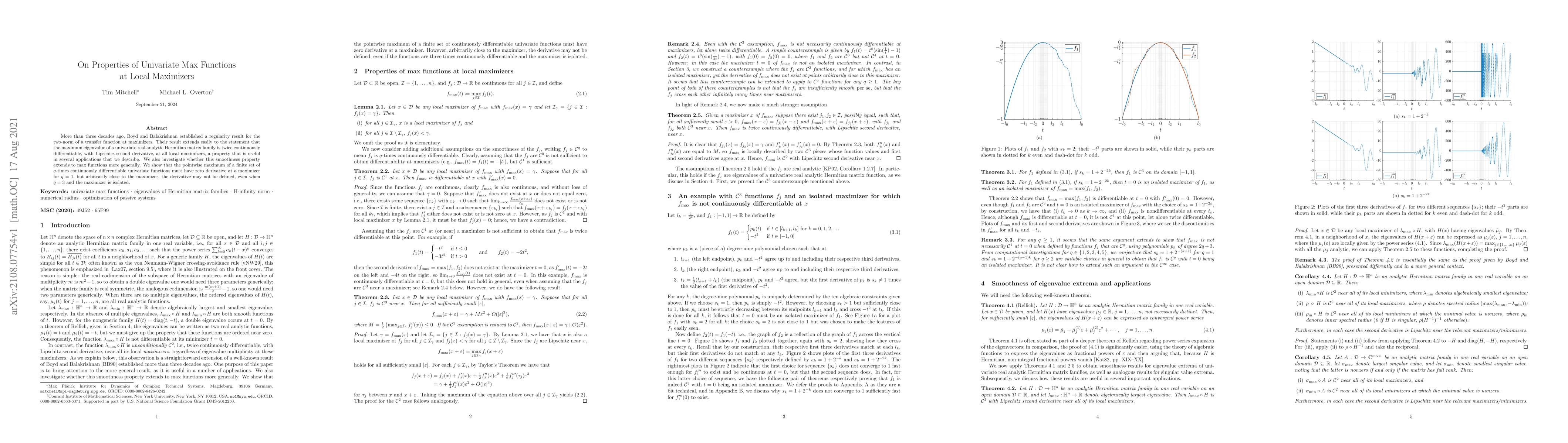 More than three decades ago, Boyd and Balakrishnan established a regularity result for the two-norm of a transfer function at maximizers. Their result extends easily to the statement that the maximum eigenvalue of a univariate real analytic Hermitian matrix family is twice continuously differentiable, with Lipschitz second derivative, at all local maximizers, a property that is useful in several applications that we describe. We also investigate whether this smoothness property extends to max functions more generally. We show that the pointwise maximum of a finite set of $q$-times continuously differentiable univariate functions must have zero derivative at a maximizer for $q=1$, but arbitrarily close to the maximizer, the derivative may not be defined, even when $q=3$ and the maximizer is isolated.