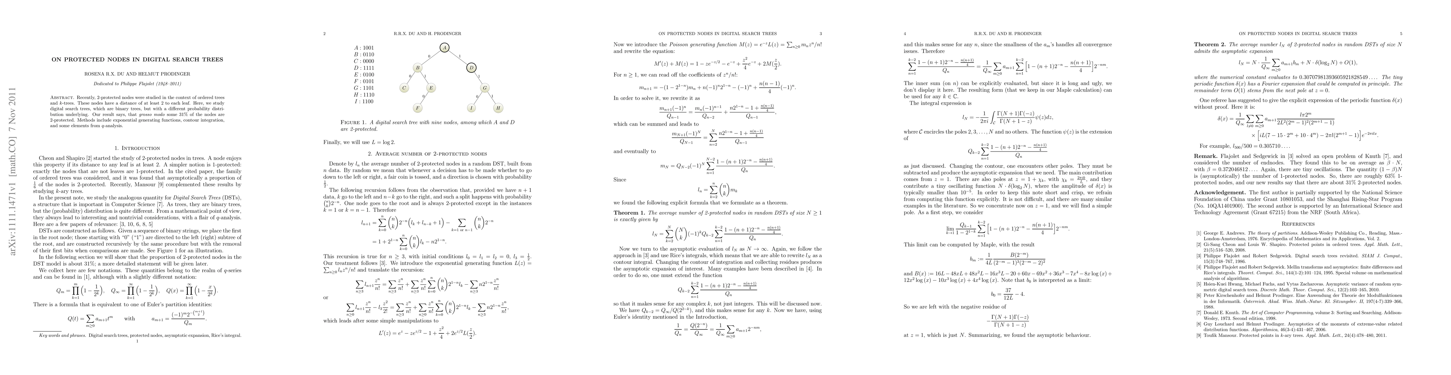 This work extends previous research on protected nodes in ordered trees and k-trees to the unique probability distribution underlying digital search trees, providing new insights into their structural properties.