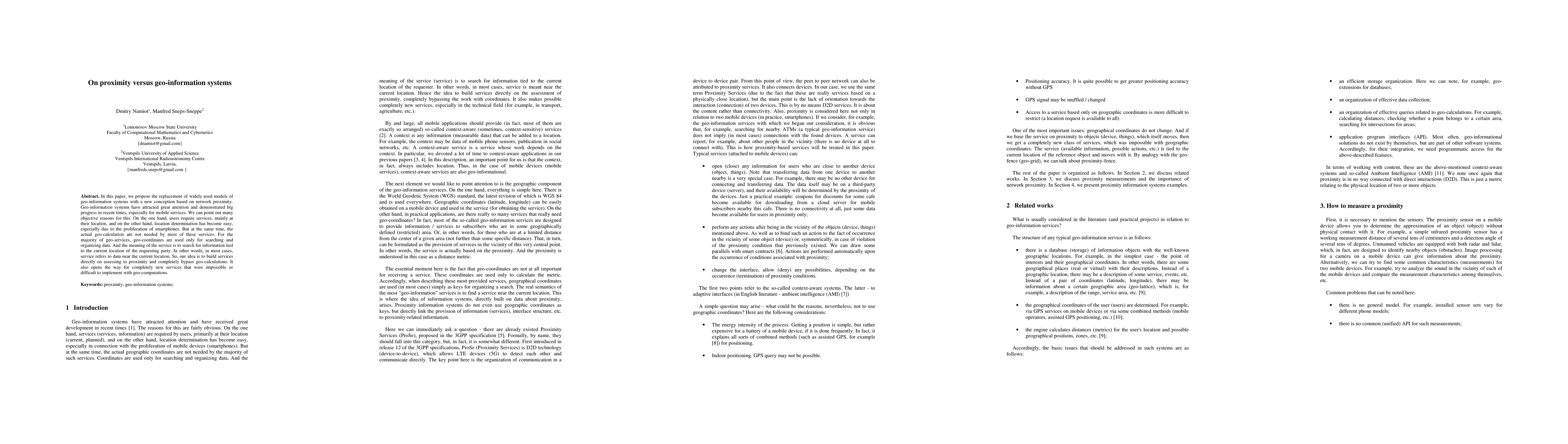 In this paper, we propose the replacement of widely used models of geo-information systems with a new conception based on network proximity. Geo-information systems have attracted great attention and demonstrated big progress in recent times, especially for mobile services. We can point out many objective reasons for this. On the one hand, users require services, mainly at their location, and on the other hand, location determination has become easy, especially due to the proliferation of smartphones. But at the same time, the actual geo-calculation are not needed by most of these services. For the majority of geo-services, geo-coordinates are used only for searching and organizing data. And the meaning of the service is to search for information tied to the current location of the requesting party. In other words, in most cases, service refers to data near the current location. So, our idea is to build services directly on assessing to proximity and completely bypass geo-calculations. It also opens the way for completely new services that were impossible or difficult to implement with geo-computations.