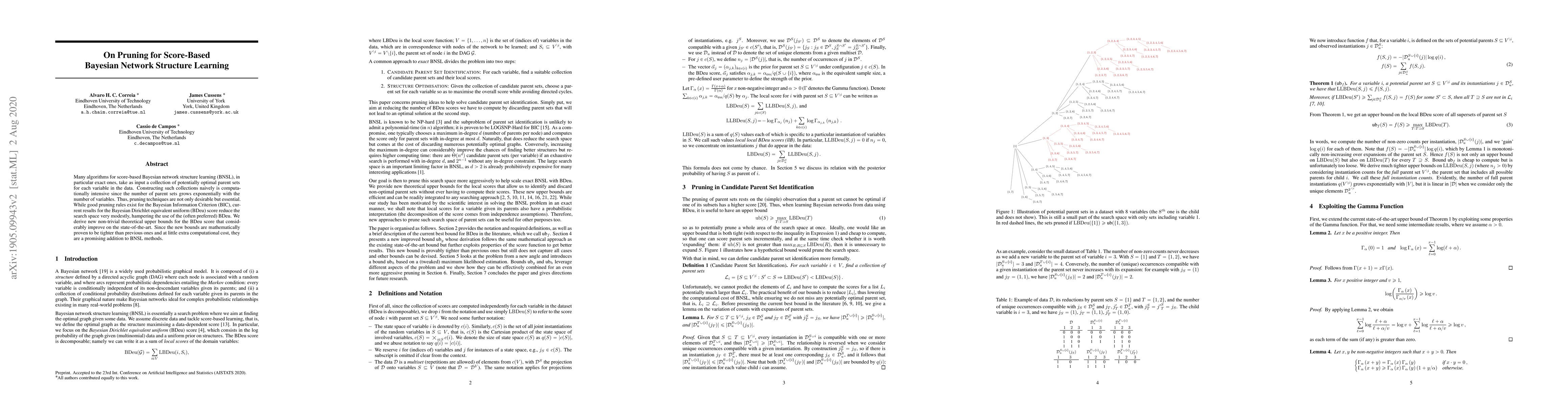 This paper introduces new theoretical upper bounds for the BDeu score to enhance pruning in Bayesian network structure learning, significantly improving the search space reduction compared to previous methods. These bounds are tighter and offer a more efficient approach to pruning, making them a valuable addition to BNSL algorithms.
