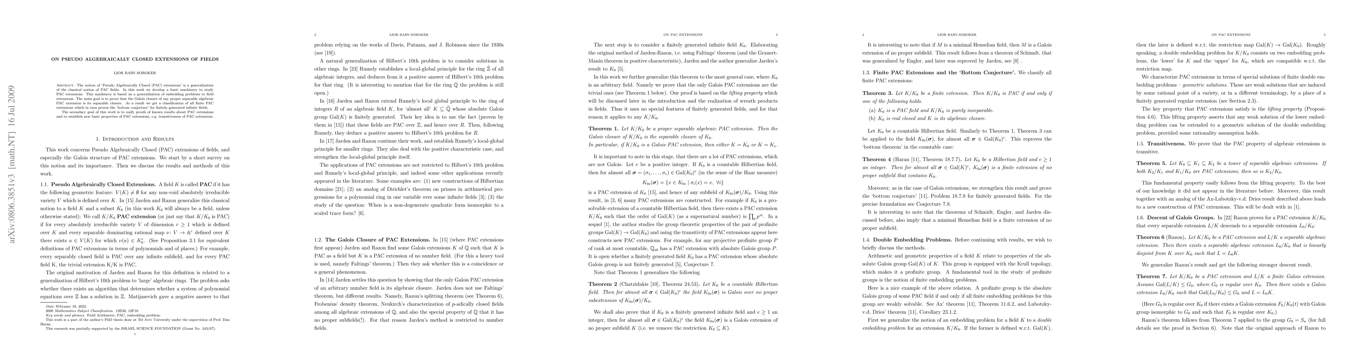 This paper develops a framework for studying Pseudo Algebraically Closed (PAC) extensions of fields, generalizing classical PAC fields and addressing Hilbert's tenth problem. It proves that the Galois closure of any proper separable algebraic PAC extension is its separable closure, leading to a classification of finite PAC extensions and proving the 'bottom conjecture' for finitely generated infinite fields.