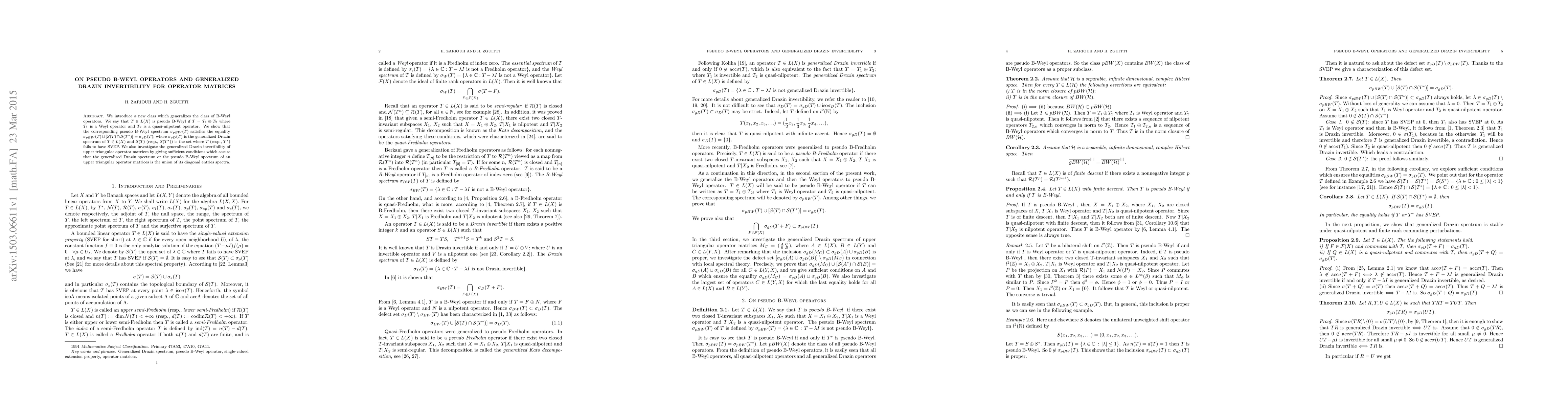 We introduce a new class which generalizes the class of B-Weyl operators. We say that $T\in L(X)$ is pseudo B-Weyl if $T=T_1\oplus T_2$ where $T_1$ is a Weyl operator and $T_2$ is a quasi-nilpotent operator. We show that the corresponding pseudo B-Weyl spectrum $\sigma_{pBW}(T)$ satisfies the equality $\sigma_{pBW}(T)\cup[{\mathcal S}(T)\cap{\mathcal S}(T^*)]=\sigma_{gD}(T);$ where $\sigma_{gD}(T)$ is the generalized Drazin spectrum of $T\in L(X)$ and ${\mathcal S}(T)$ (resp., ${\mathcal S} (T^*)$) is the set where $T$ (resp., $T^*$) fails to have SVEP. We also investigate the generalized Drazin invertibility of upper triangular operator matrices by giving sufficient conditions which assure that the generalized Drazin spectrum or the pseudo B-Weyl spectrum of an upper triangular operator matrices is the union of its diagonal entries spectra.