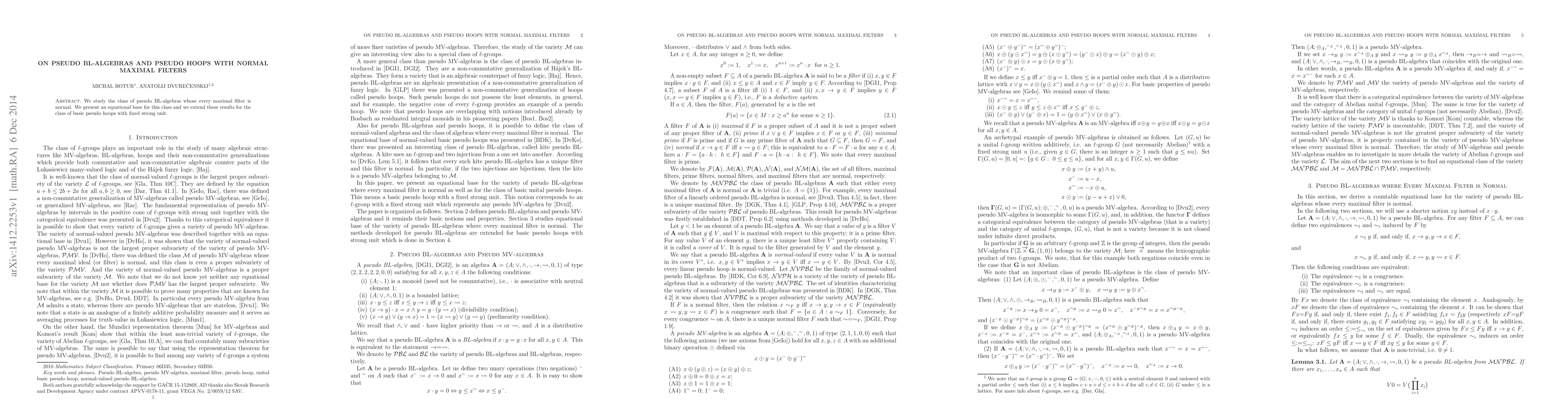 This paper explores pseudo BL-algebras with normal maximal filters, providing an equational base for this class and extending these results to basic pseudo hoops with a fixed strong unit.