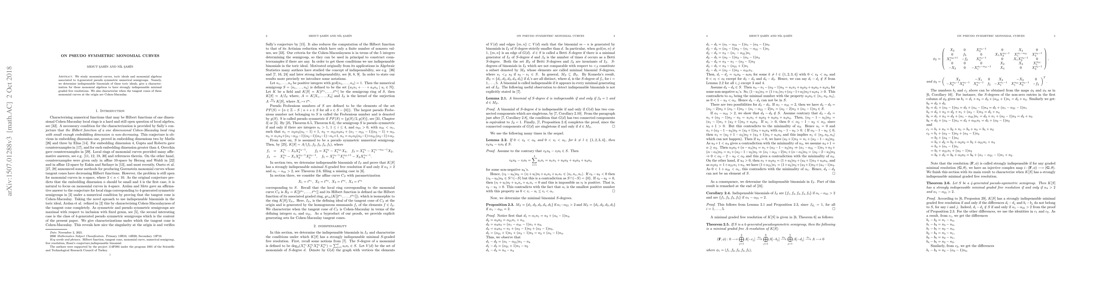 This paper investigates monomial curves related to 4-generated pseudo symmetric numerical semigroups, identifying essential binomials in their toric ideals and characterizing their minimal graded free resolutions. It also determines when the tangent cones of these curves at the origin are Cohen-Macaulay.