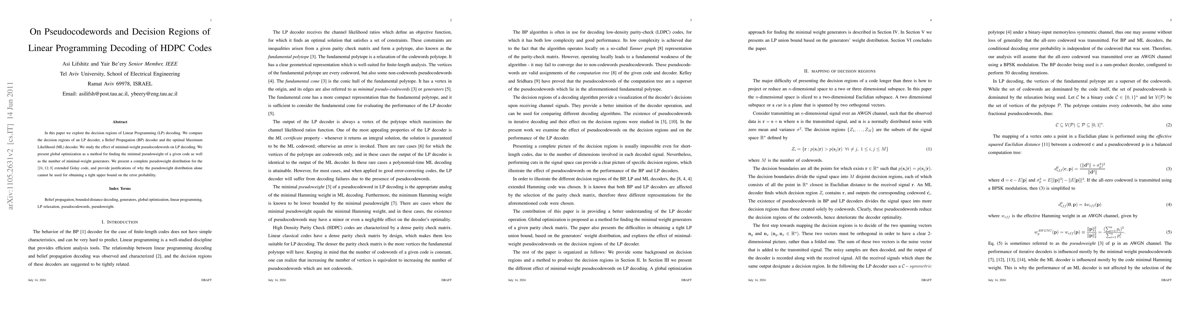 In this paper we explore the decision regions of Linear Programming (LP) decoding. We compare the decision regions of an LP decoder, a Belief Propagation (BP) decoder and the optimal Maximum Likelihood (ML) decoder. We study the effect of minimal-weight pseudocodewords on LP decoding. We present global optimization as a method for finding the minimal pseudoweight of a given code as well as the number of minimal-weight generators. We present a complete pseudoweight distribution for the [24; 12; 8] extended Golay code, and provide justifications of why the pseudoweight distribution alone cannot be used for obtaining a tight upper bound on the error probability.