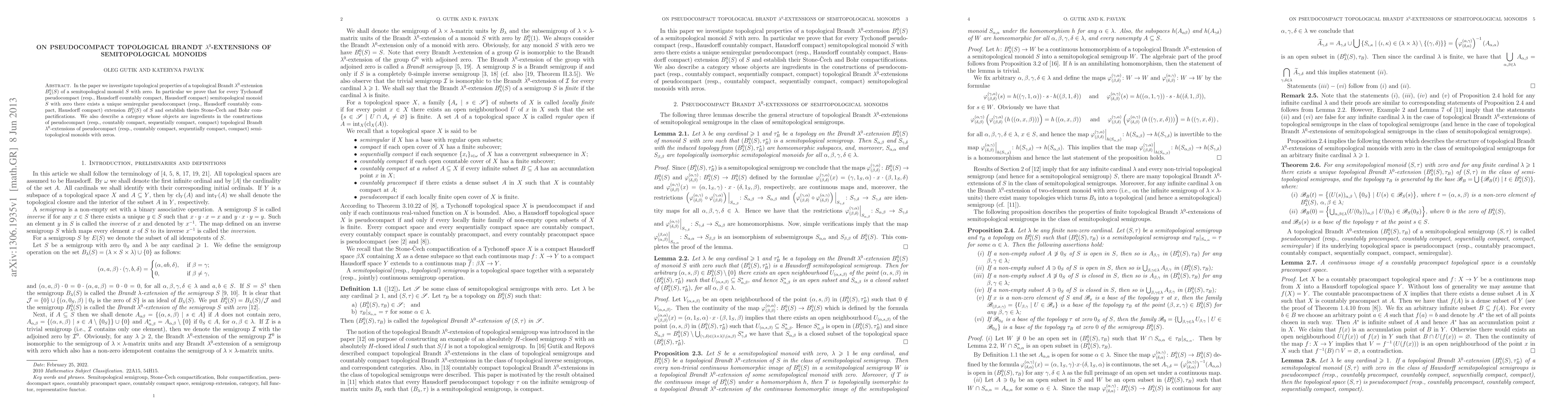 In the paper we investigate topological properties of a topological Brandt $\lambda^0$-extension $B^0_{\lambda}(S)$ of a semitopological monoid $S$ with zero. In particular we prove that for every Tychonoff pseudocompact (resp., Hausdorff countably compact, Hausdorff compact) semitopological monoid $S$ with zero there exists a unique semiregular pseudocompact (resp., Hausdorff countably compact, Hausdorff compact) extension $B^0_{\lambda}(S)$ of $S$ and establish theirs Stone-\v{C}ech and Bohr compactifications. We also describe a category whose objects are ingredients in the constructions of pseudocompact (resp., countably compact, sequentially compact, compact) topological Brandt $\lambda^0$-extensions of pseudocompact (resp., countably compact, sequentially compact, compact) semitopological monoids with zeros.