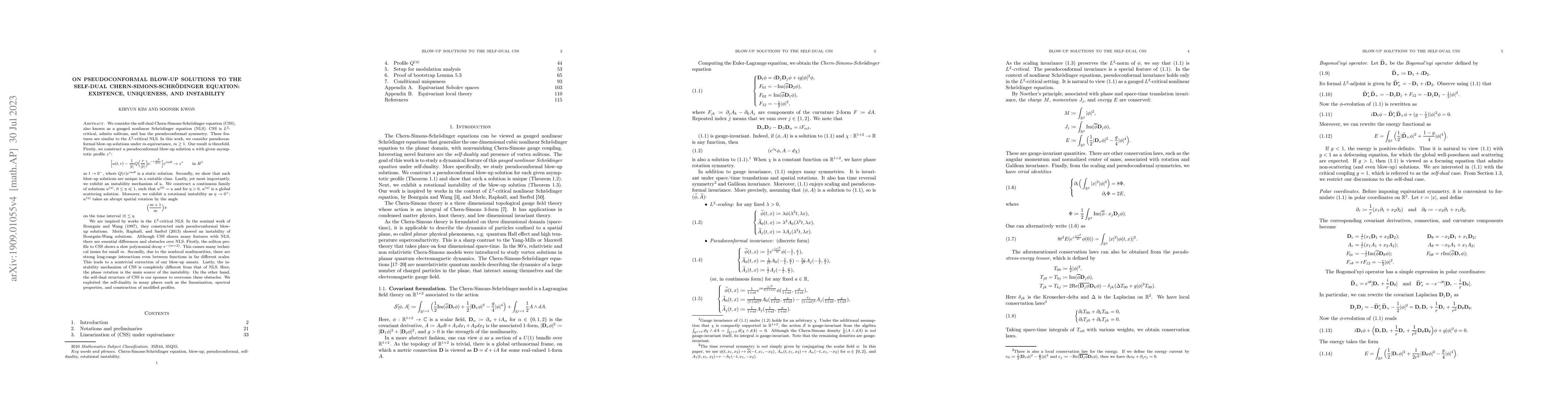 We consider the self-dual Chern-Simons-Schr\"odinger equation (CSS). CSS is $L^{2}$-critical, admits solitons, and has the pseudoconformal symmetry. In this work, we consider pseudoconformal blow-up solutions under $m$-equivariance, $m\geq1$. Our result is threefold. Firstly, we construct a pseudoconformal blow-up solution $u$ with given asymptotic profile $z^{\ast}$: \[ \Big[u(t,r)-\frac{1}{|t|}Q\Big(\frac{r}{|t|}\Big)e^{-i\frac{r^{2}}{4|t|}}\Big]e^{im\theta}\to z^{\ast}\qquad\text{in }H^{1} \] as $t\to0^{-}$, where $Q(r)e^{im\theta}$ is a static solution. Secondly, we show that such blow-up solutions are unique in a suitable class. Lastly, we exhibit an instability mechanism of $u$. We construct a continuous family of solutions $u^{(\eta)}$, $0\leq\eta\ll1$, such that $u^{(0)}=u$ and for $\eta>0$, $u^{(\eta)}$ is a global scattering solution exhibiting a rotational instability as $\eta\to0^{+}$: $u^{(\eta)}$ takes an abrupt spatial rotation by the angle \[ \Big(\frac{m+1}{m}\Big)\pi \] on the time interval $|t|\lesssim\eta$. We are inspired by works in the $L^{2}$-critical NLS. In the seminal work of Bourgain and Wang (1997), they constructed such pseudoconformal blow-up solutions. Merle, Rapha\"el, and Szeftel (2013) showed an instability of Bourgain-Wang solutions. Although CSS shares many features with NLS, there are essential differences and obstacles over NLS. To name a few, the soliton profile to CSS shows a slow decay $r^{-(m+2)}$, CSS has nonlocal nonlinearities responsible for strong long-range interactions, and the instability mechanism of CSS is completely different from that of NLS. Here, the phase rotation is the main source of the instability. On the other hand, the self-dual structure of CSS is our sponsor to overcome these obstacles. We exploited the self-duality in many places such as the linearization, spectral properties, and construction of modified profiles.
