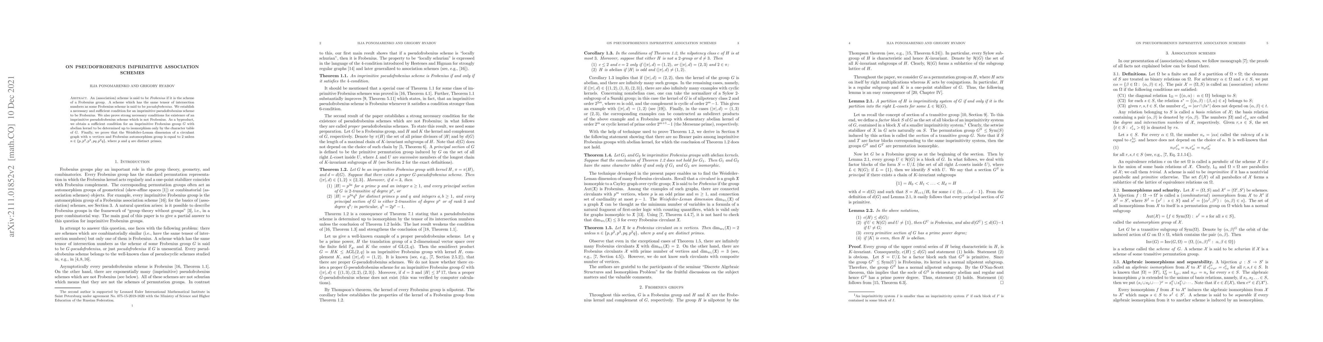 An (association) scheme is said to be Frobenius if it is the scheme of a Frobenius group. A scheme which has the same tensor of intersection numbers as some Frobenius scheme is said to be pseudofrobenius. We establish a necessary and sufficient condition for an imprimitive pseudofrobenius scheme to be Frobenius. We also prove strong necessary conditions for existence of an imprimitive pseudofrobenius scheme which is not Frobenius. As a byproduct, we obtain a sufficient condition for an imprimitive Frobenius group $G$ with abelian kernel to be determined up to isomorphism only by the character table of $G$. Finally, we prove that the Weisfeiler-Leman dimension of a circulant graph with $n$ vertices and Frobenius automorphism group is equal to $2$ unless $n\in \{p,p^2,p^3,pq,p^2q\}$, where $p$ and $q$ are distinct primes.