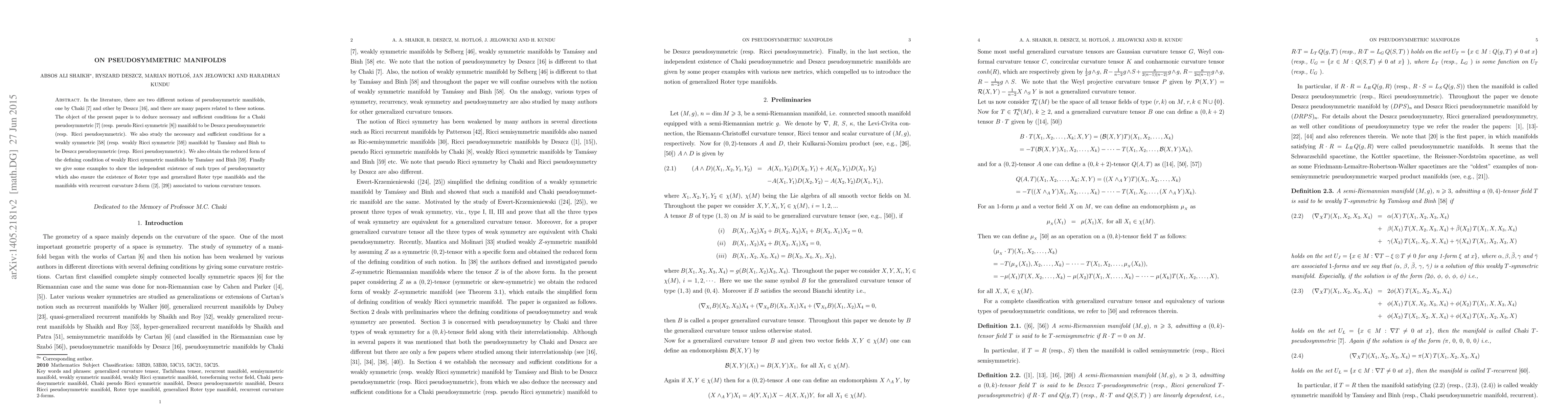 This paper explores necessary and sufficient conditions for different types of pseudosymmetric manifolds to transition between definitions by Chaki and Deszcz, focusing on Chaki and Deszcz pseudosymmetric manifolds as well as weakly symmetric and weakly Ricci symmetric manifolds. It also provides examples demonstrating the independent existence of these pseudosymmetric types.