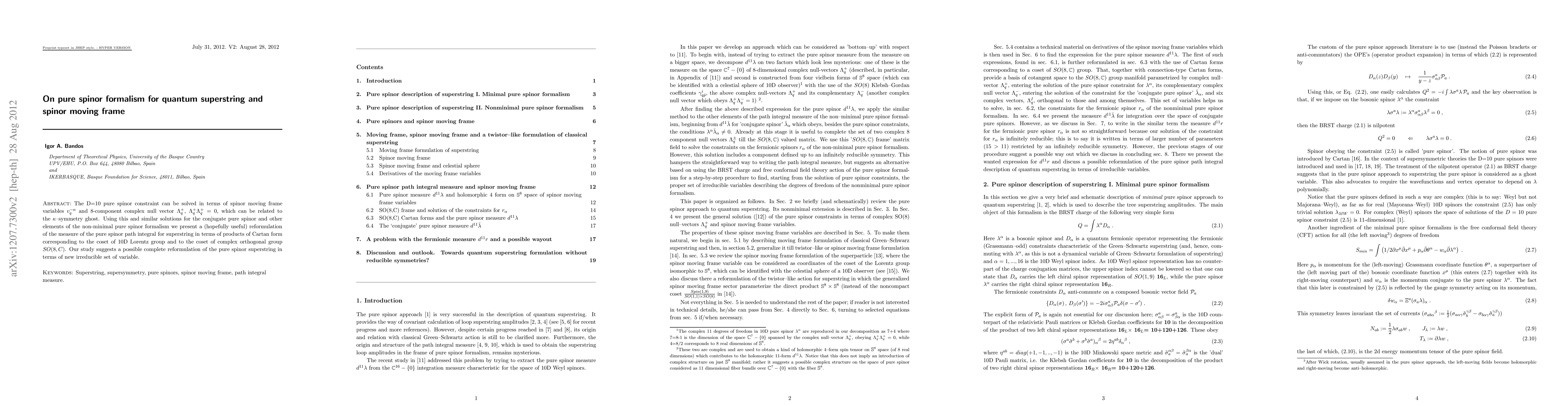 The D=10 pure spinor constraint can be solved in terms of spinor moving frame variables and 8-component complex null vector which can be related to the kappa-symmetry ghost. Using this and similar solutions for the conjugate pure spinor and other elements of the non-minimal pure spinor formalism we present a (hopefully useful) reformulation of the measure of the pure spinor path integral for superstring in terms of products of Cartan form corresponding to the coset of 10D Lorentz group and to the coset of complex orthogonal group SO(8,C). Our study suggests a possible complete reformulation of the pure spinor superstring in terms of new irreducible set of variable.