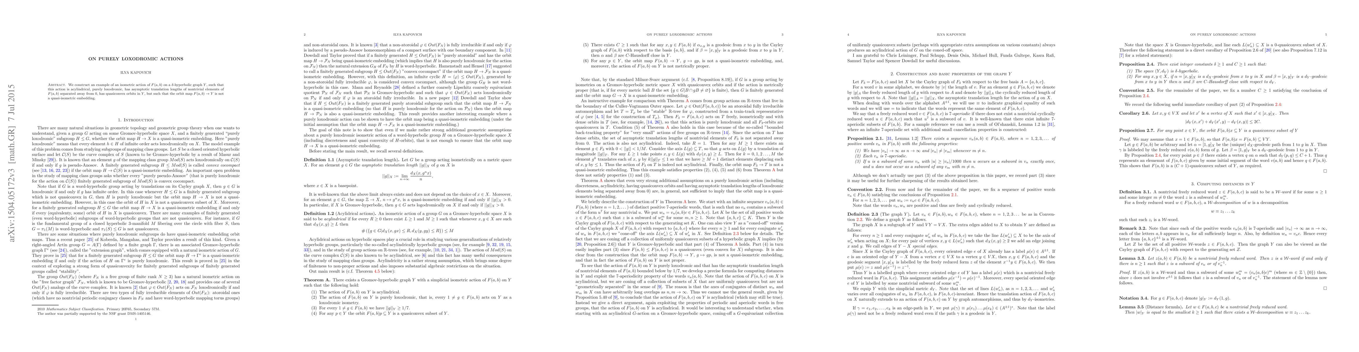 We construct an example of an isometric action of $F(a,b)$ on a $\delta$-hyperbolic graph $Y$, such that this action is acylindrical, purely loxodromic, has asymptotic translation lengths of nontrivial elements of $F(a,b)$ separated away from $0$, has quasiconvex orbits in $Y$, but such that the orbit map $F(a,b)\to Y$ is not a quasi-isometric embedding.