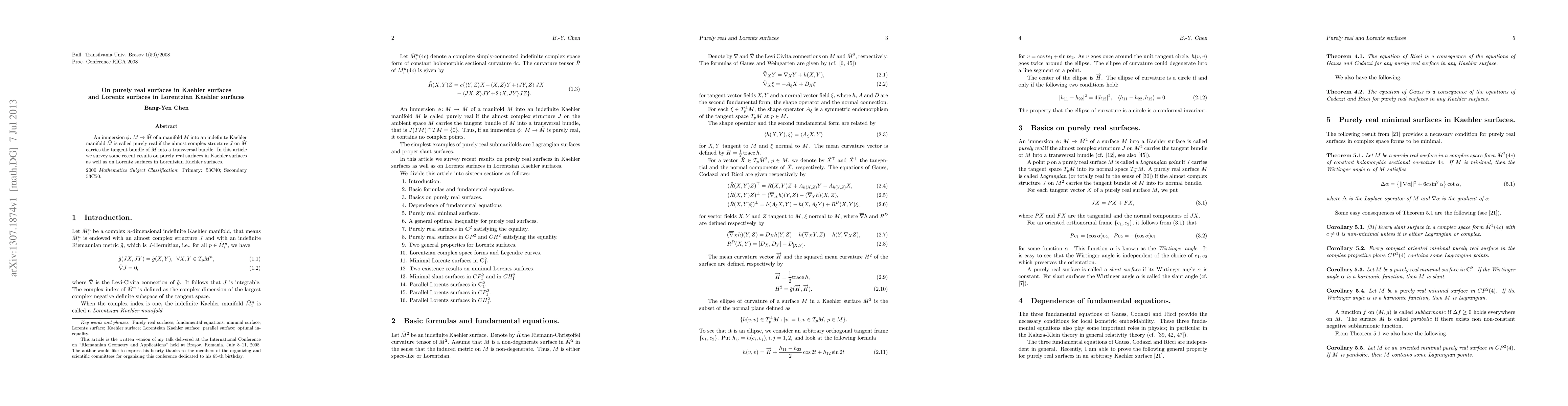 An immersion $\phi \colon M \to \tilde M$ of a manifold $M$ into an indefinite Kaehler manifold $\tilde M$ is called purely real if the almost complex structure $J$ on $\tilde M$ carries the tangent bundle of $M$ into a transversal bundle. In this article we survey some recent results on purely real surfaces in Kaehler surfaces as well as on Lorentz surfaces in Lorentzian Kaehler surfaces.