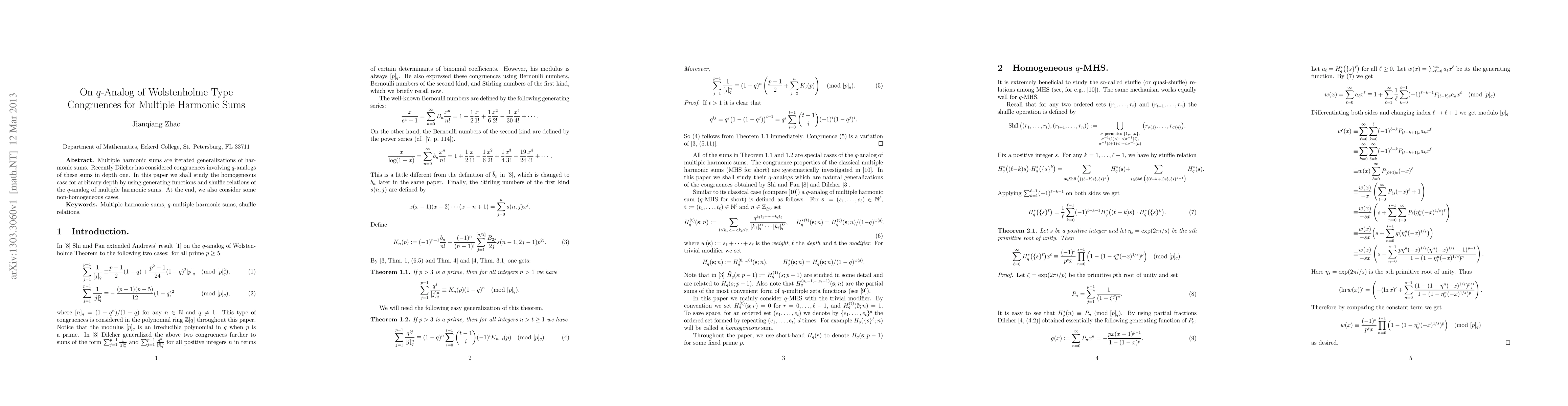 This paper explores q-analogs of Wolstenholme-type congruences for multiple harmonic sums, utilizing generating functions and shuffle relations for the homogeneous case at arbitrary depth, and also briefly discusses non-homogeneous cases.