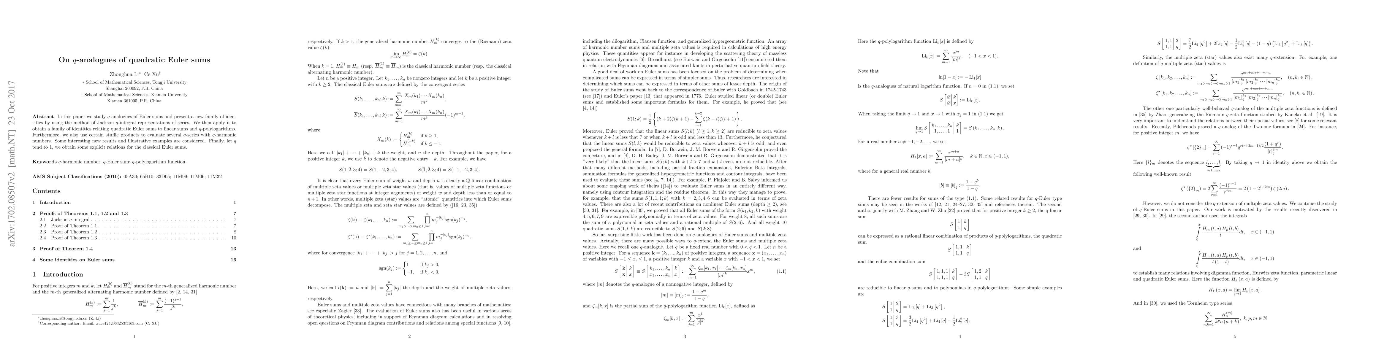 The paper introduces a new method to find identities relating quadratic Euler sums to linear sums and q-polylogarithms, and explores the behavior of these sums as q approaches 1, leading to explicit relations for classical Euler sums.