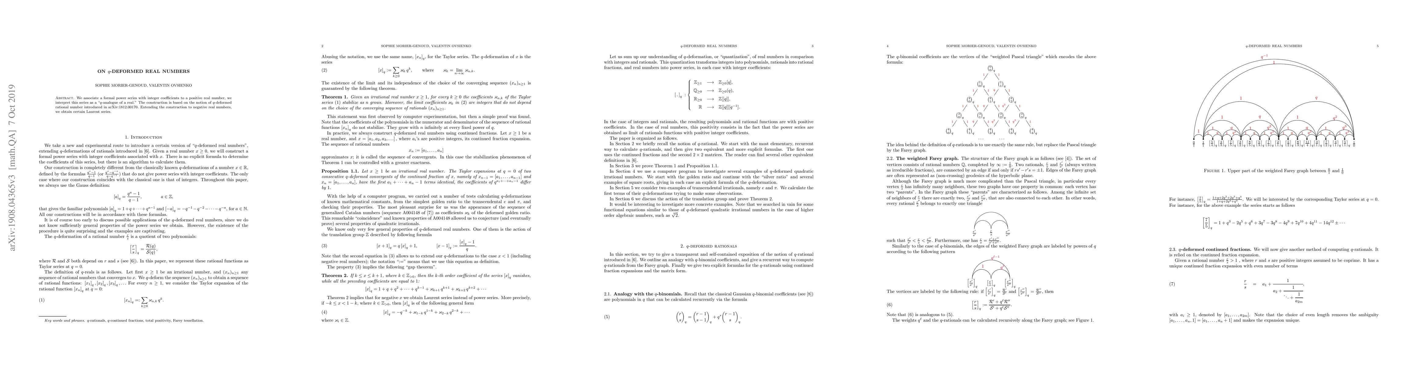 We associate a formal power series with integer coefficients to a positive real number, we interpret this series as a "$q$-analogue of a real." The construction is based on the notion of $q$-deformed rational number introduced in arXiv:1812.00170. Extending the construction to negative real numbers, we obtain certain Laurent series.