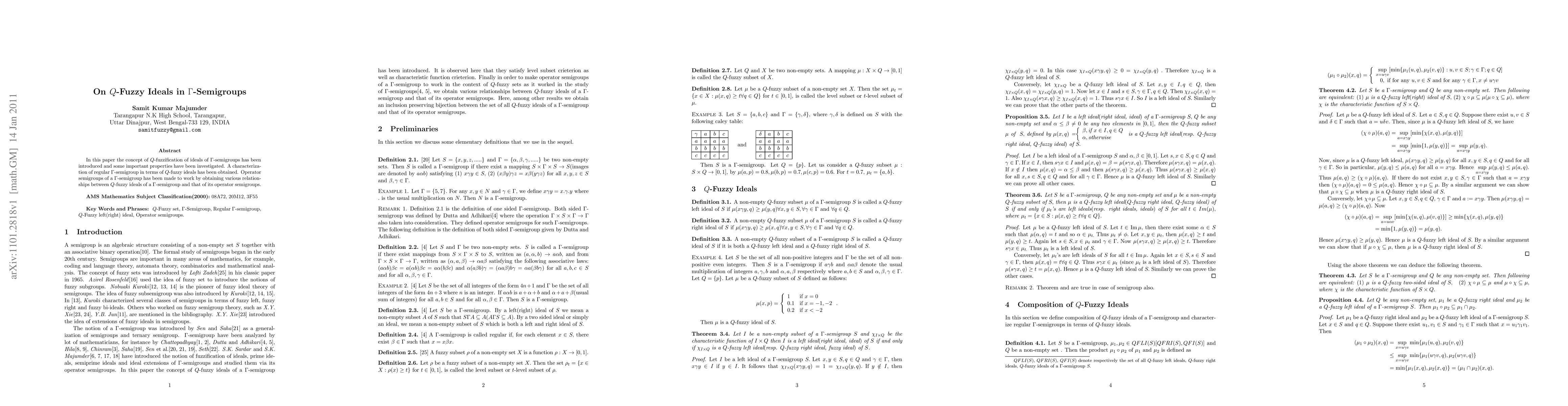 The paper presents a novel approach to studying ideals in gamma-semigroups by introducing Q-fuzzy ideals and establishing their properties, along with proving key theorems on their compositions and relationships with operator semigroups.