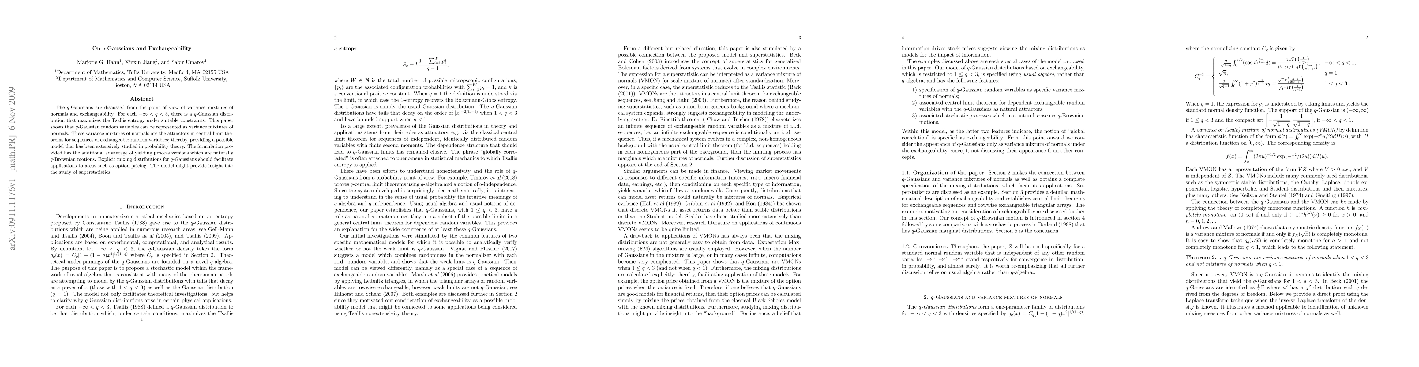 This paper explores q-Gaussians as variance mixtures of normals and their role in exchangeability, demonstrating that they maximize Tsallis entropy under specific constraints. It also shows that q-Gaussian random variables serve as attractors in central limit theorems for exchangeable sequences, offering a new perspective in probability theory and potential applications in option pricing and superstatistics.