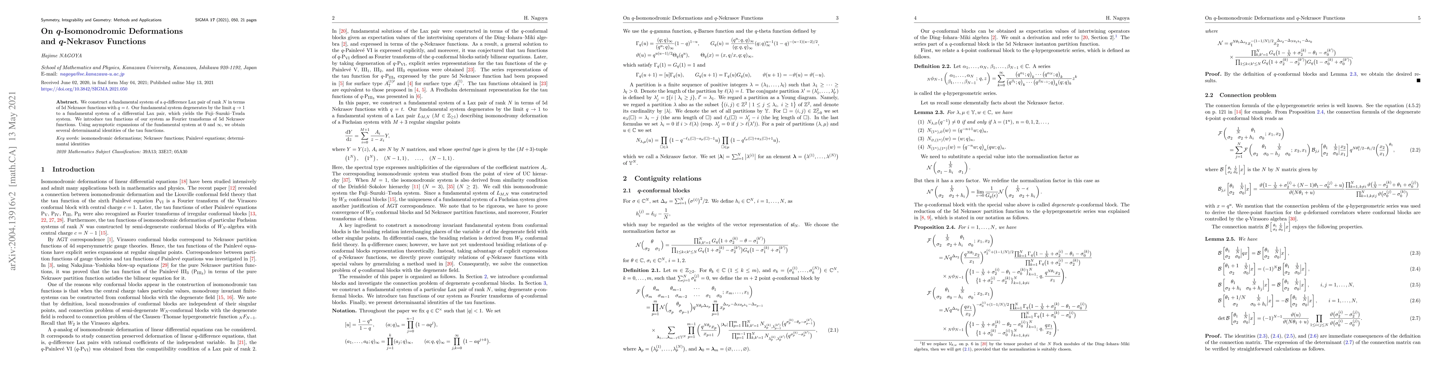 This paper constructs a $q$-difference Lax pair from 5d Nekrasov functions with $q=t$, which reduces to a differential Lax pair yielding the Fuji-Suzuki-Tsuda system as $q\to 1$. The study also introduces tau functions via Fourier transforms of these functions and derives determinantal identities using asymptotic expansions.
