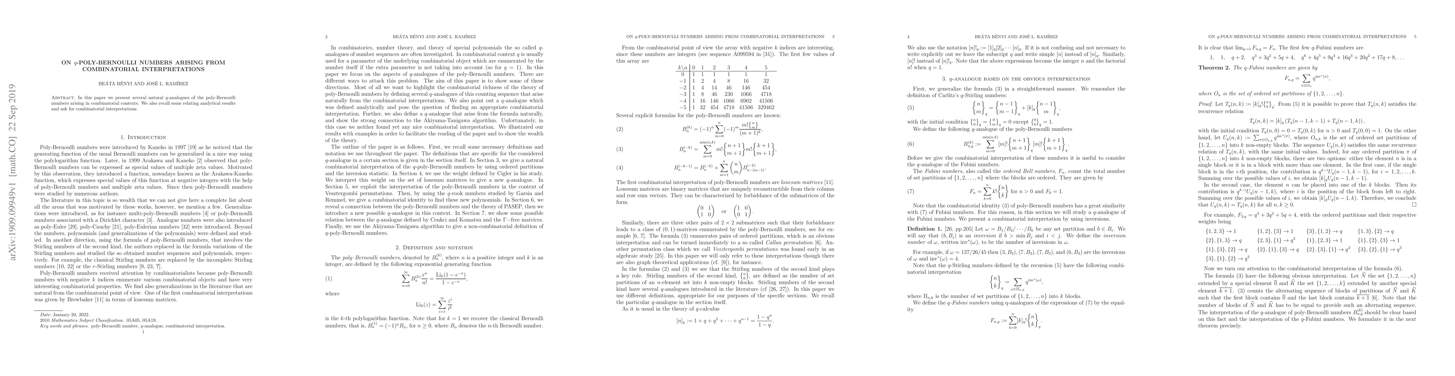 This paper introduces $q$-analogues of poly-Bernoulli numbers found in combinatorial settings and discusses related analytical results, seeking deeper combinatorial interpretations.