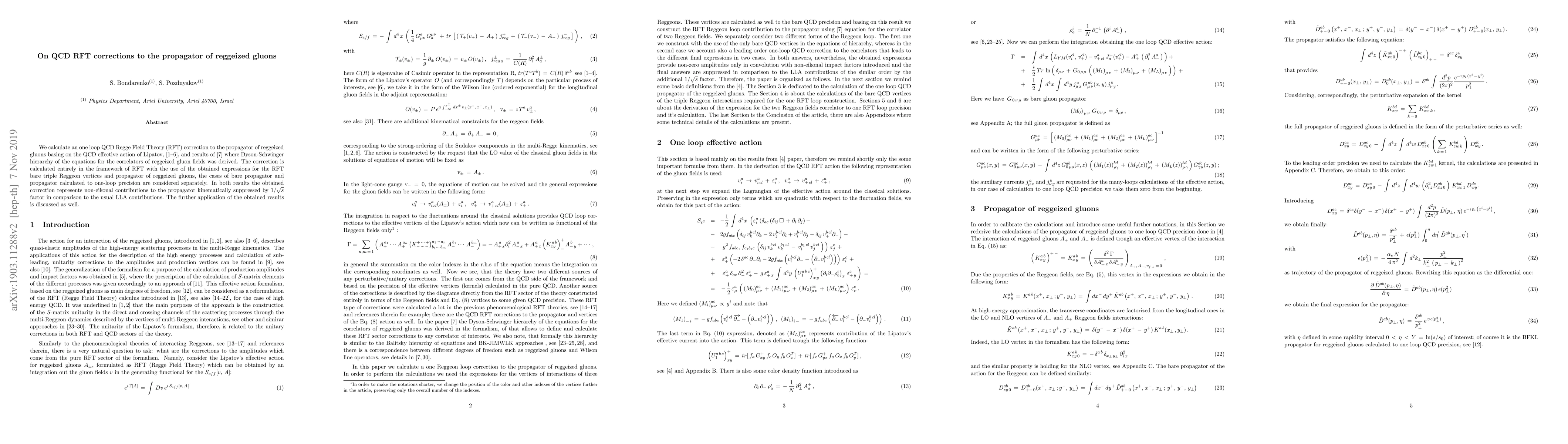 This paper calculates the one-loop QCD Regge Field Theory (RFT) correction to the propagator of reggeized gluons using Lipatov's QCD effective action and Dyson-Schwinger equations. The correction is non-eikonal and kinematically suppressed by $1/\sqrt{s}$, with implications for further applications in QCD studies.