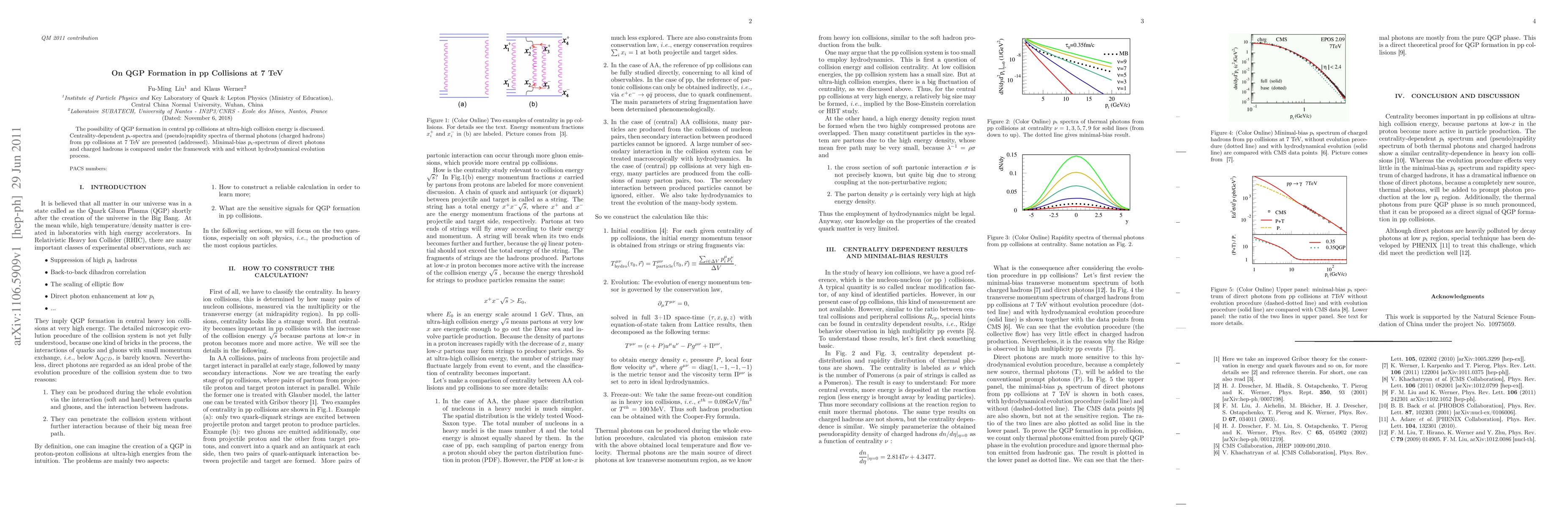 The paper explores the potential for Quark-Gluon Plasma (QGP) formation in central proton-proton collisions at 7 TeV. It presents centrality-dependent transverse momentum spectra and (pseudo)rapidity spectra of thermal photons and charged hadrons, comparing minimal-bias spectra of direct photons and charged hadrons within frameworks with and without hydrodynamical evolution.