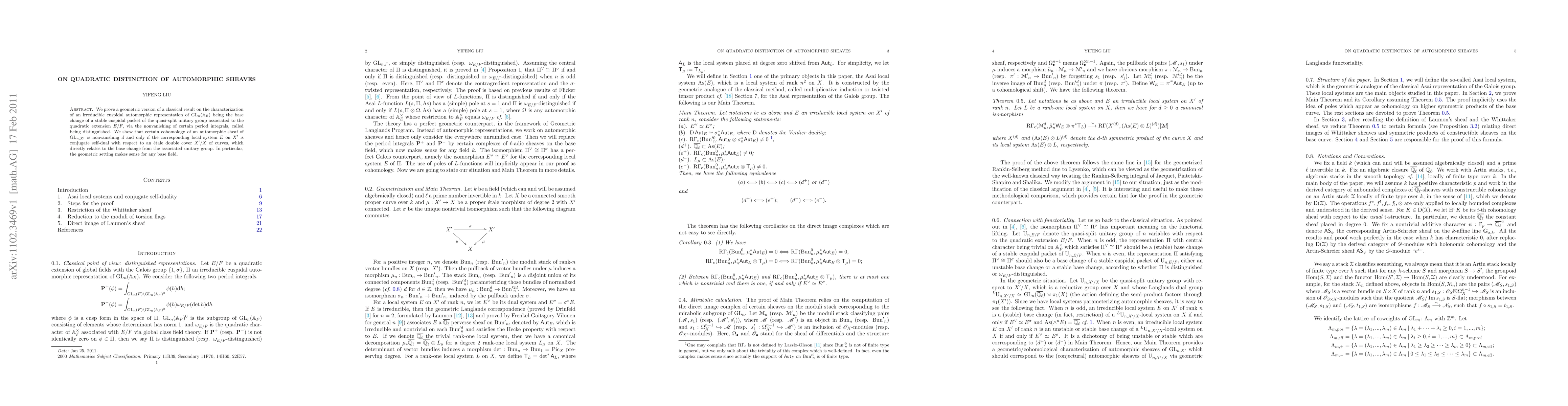 This paper proves a geometric characterization of distinguished automorphic representations via nonvanishing period integrals, showing that the cohomology of an automorphic sheaf is nonvanishing if the corresponding local system is conjugate self-dual, linking base change from quasi-split unitary groups. The results apply to any base field.