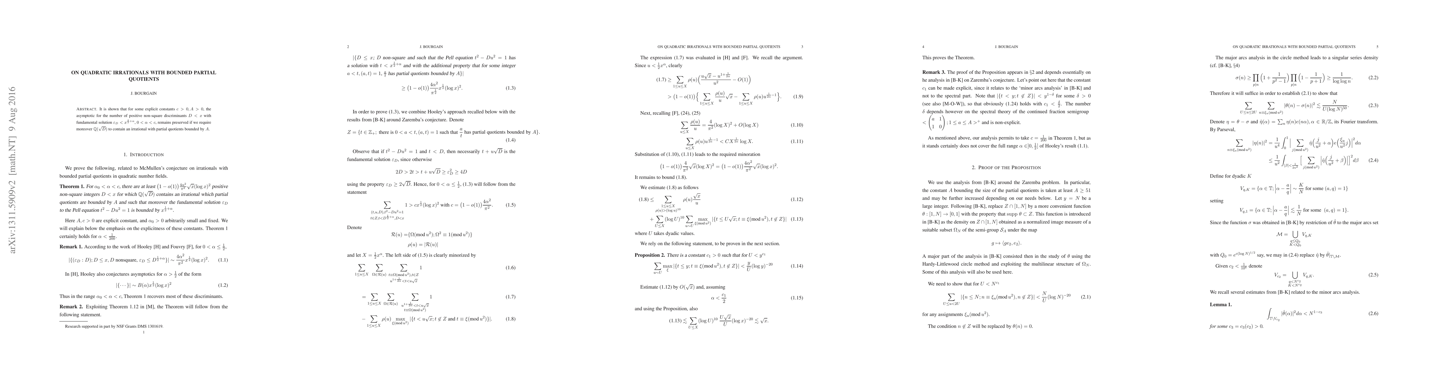 Researchers found that certain quadratic irrationals with bounded partial quotients remain in an asymptotic relationship to the number of positive non-square discriminants, even when requiring the irrational part to be contained within a specific range.