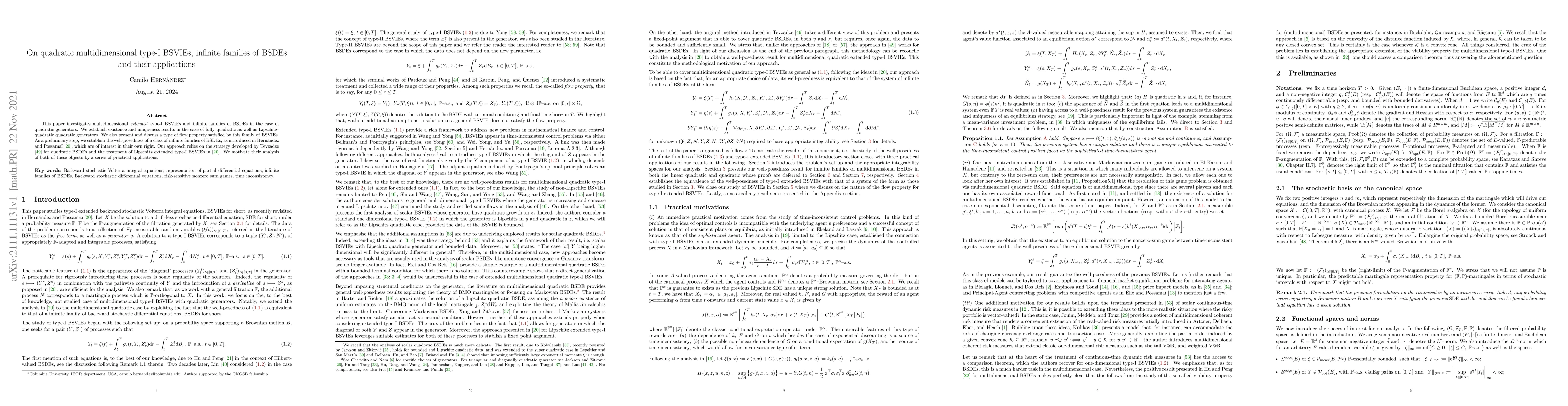This paper investigates multidimensional extended type-I backward stochastic variational inequalities (BSVIEs) and infinite families of BSDEs with quadratic generators, establishing existence and uniqueness results. It also explores the well-posedness of infinite families of BSDEs and discusses their practical applications.
