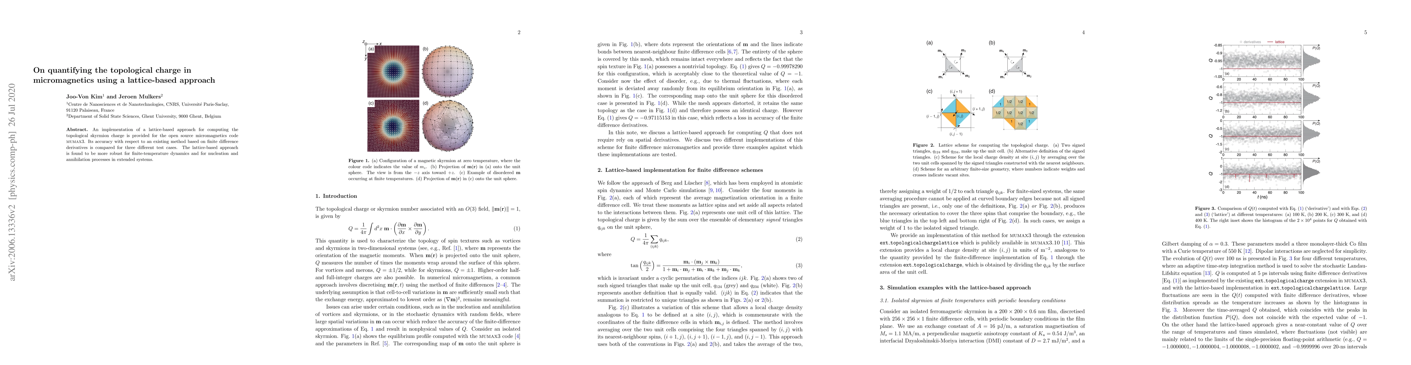 This paper introduces a lattice-based method for calculating topological skyrmion charge in micromagnetics, implemented in MuMax3. It demonstrates the method's robustness compared to finite difference derivatives, particularly in finite-temperature dynamics and extended system processes.