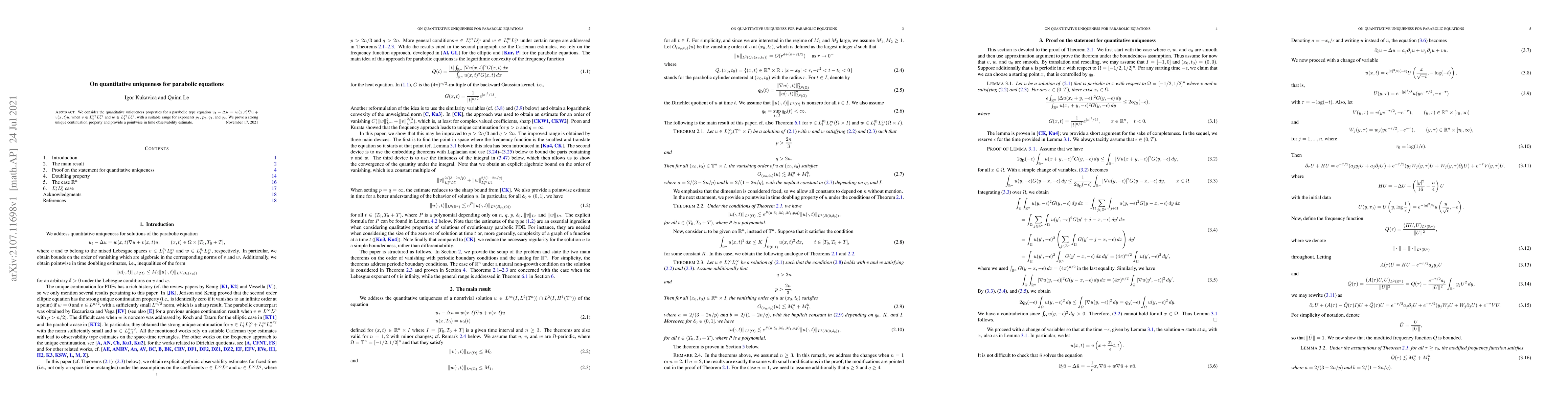 This paper investigates the quantitative uniqueness for a parabolic equation with nonlinear terms, proving a strong unique continuation property and deriving a pointwise in time observability estimate under specific integrability conditions on the coefficients.