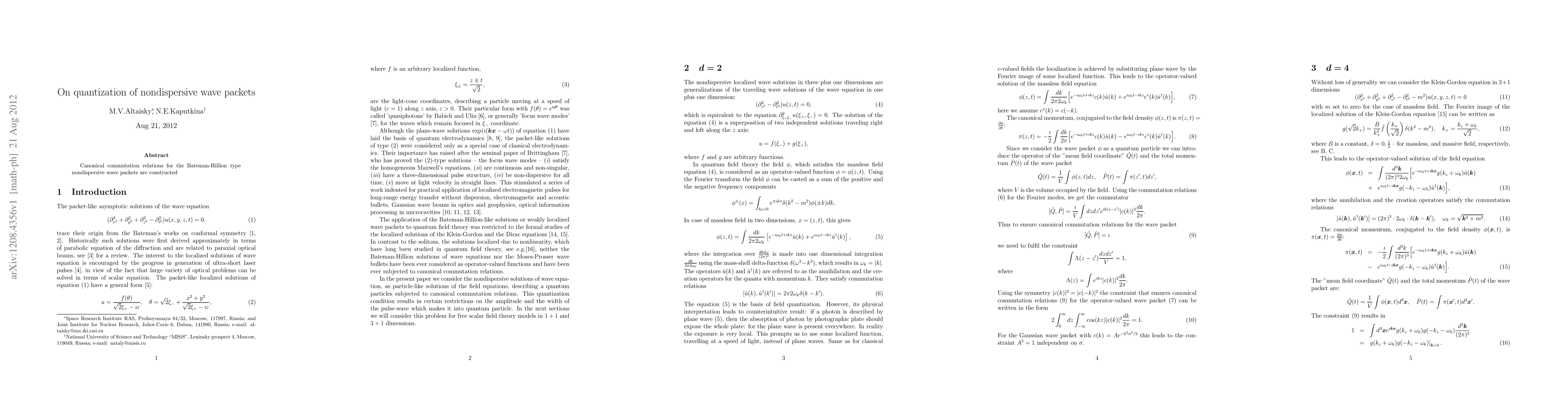Canonical commutation relations for the Bateman-Hillion type nondispersive wave packets are constructed
