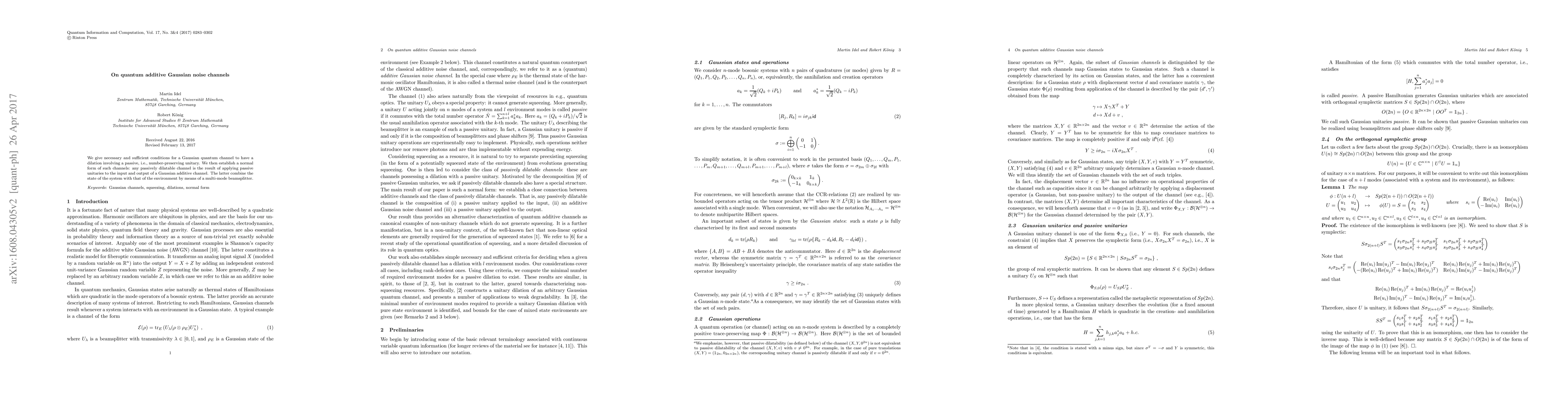 We give necessary and sufficient conditions for a Gaussian quantum channel to have a dilation involving a passive, i.e., number-preserving unitary. We then establish a normal form of such channels: any passively dilatable channel is the result of applying passive unitaries to the input and output of a Gaussian additive channel. The latter combine the state of the system with that of the environment by means of a multi-mode beamsplitter.