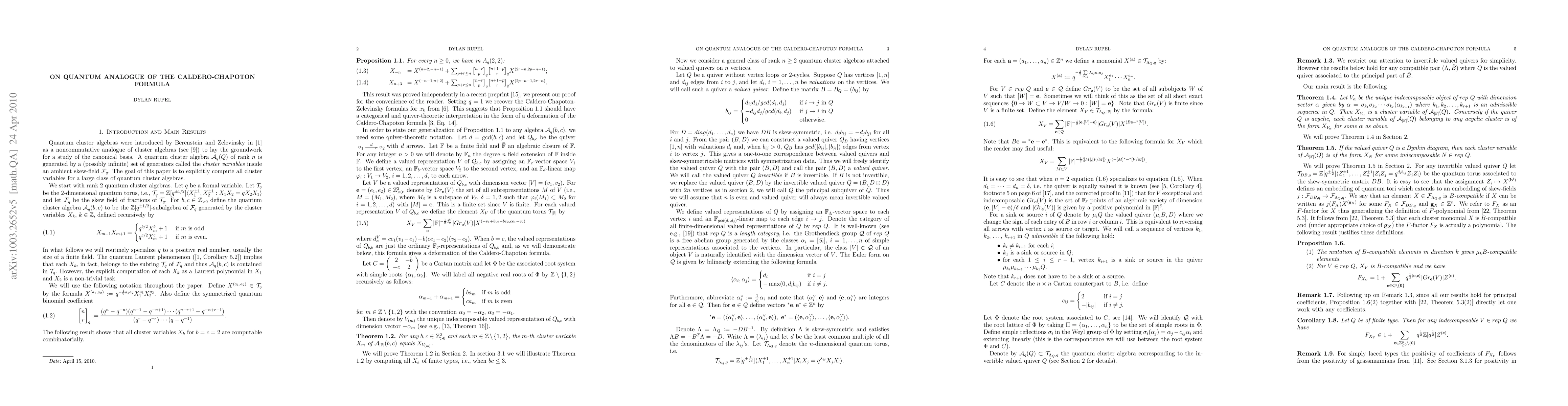 This paper investigates the relationship between the category of valued representations of an invertible quiver without oriented cycles and expansions of cluster variables in quantum cluster algebras. It establishes an analogue of the Caldero-Chapoton formula for all quantum cluster algebras of finite type and any cluster variable in an almost acyclic cluster.