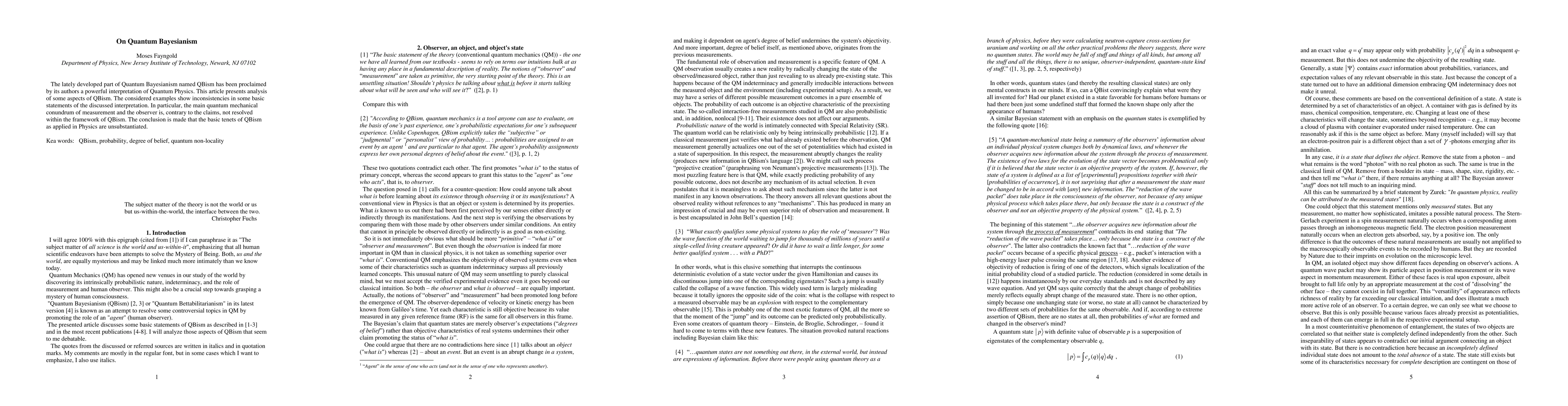 This paper analyzes QBism, a new interpretation of Quantum Physics, and identifies inconsistencies in its basic statements, particularly regarding the quantum measurement problem. The conclusion is that QBism's foundational claims in physics are not well-supported.