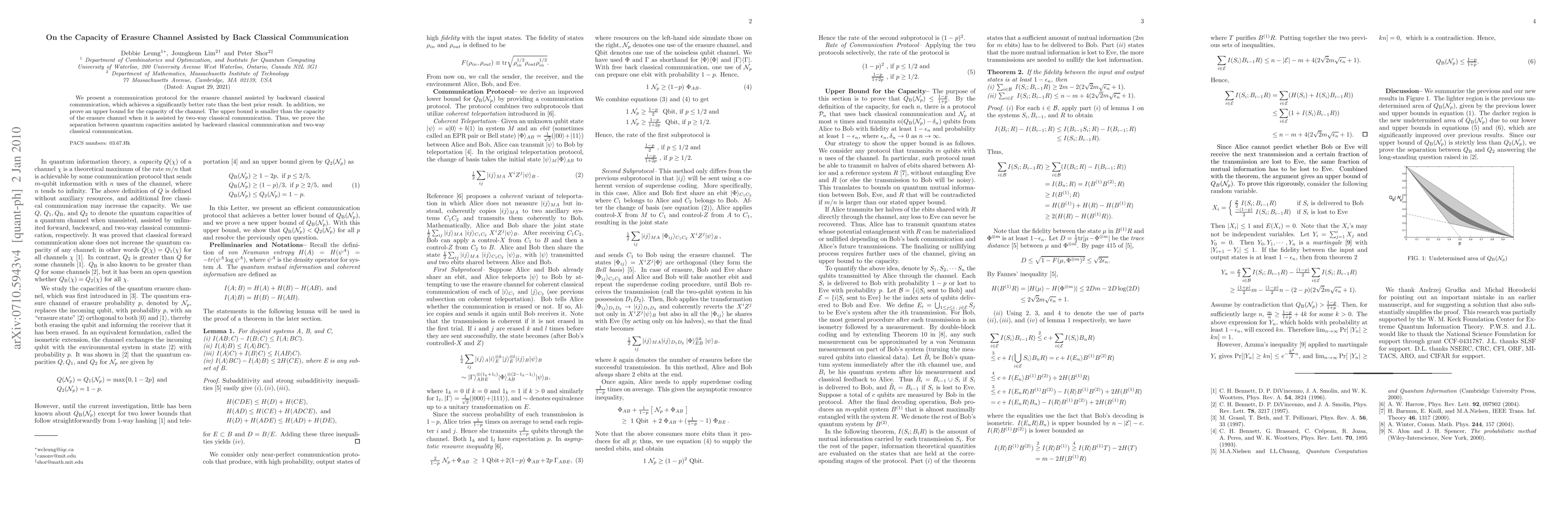 This paper introduces a communication protocol for an erasure channel enhanced by backward classical communication, achieving a superior rate compared to previous results. It also establishes an upper bound for the channel's capacity, demonstrating a separation between quantum capacities with backward versus two-way classical communication.