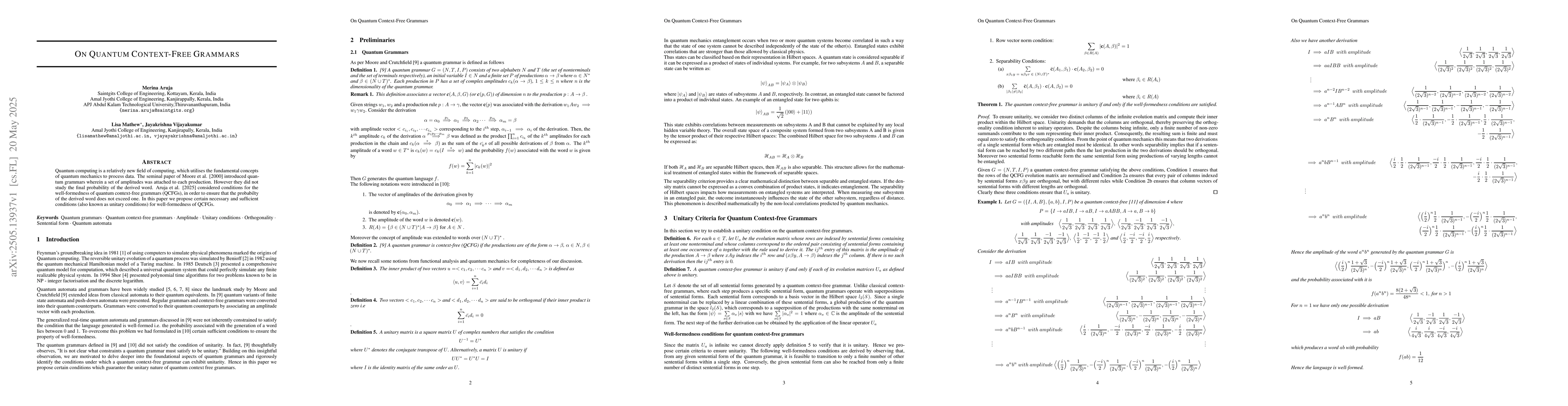 The paper proposes necessary and sufficient conditions, known as unitary conditions, for the well-formedness of Quantum Context-Free Grammars (QCFGs).