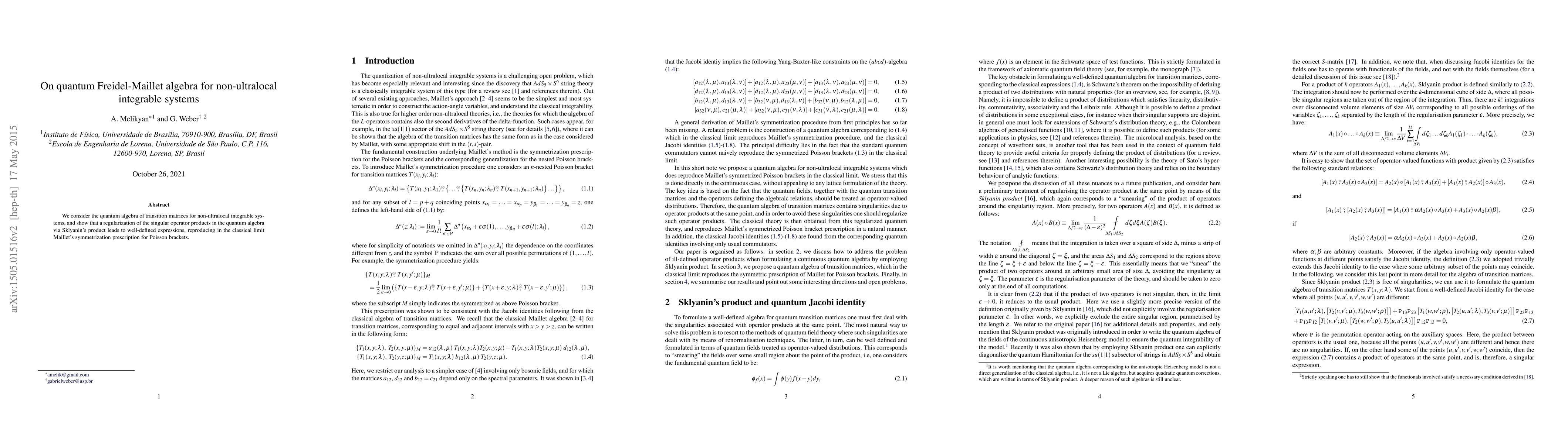 The paper examines the quantum algebra of transition matrices for non-ultralocal integrable systems, demonstrating that regularization using Sklyanin's product resolves singularities and aligns with Maillet's classical symmetrization prescription for Poisson brackets.