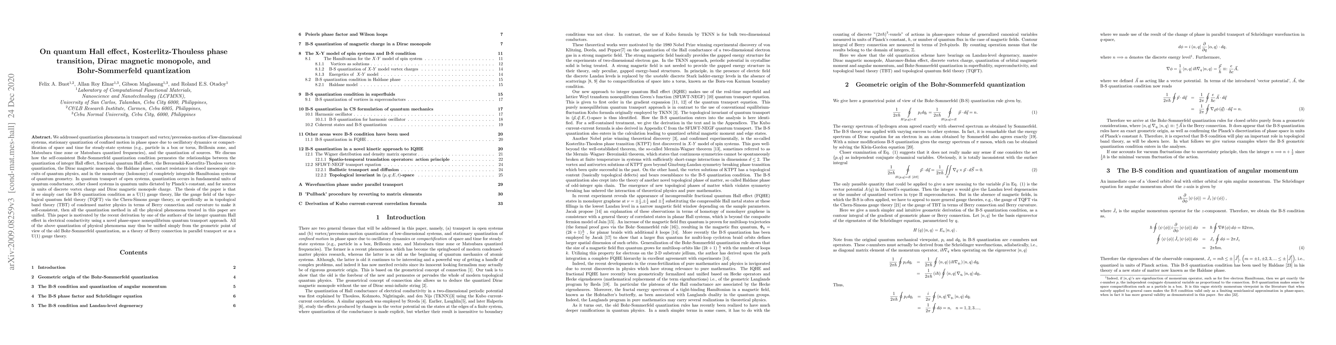This paper explores the unification of various quantization phenomena in low-dimensional systems, including the quantum Hall effect, Kosterlitz-Thouless phase transition, and Dirac magnetic monopoles. It argues that the Bohr-Sommerfeld quantization condition, when framed as a U(1) gauge theory, provides a consistent framework for understanding these phenomena.