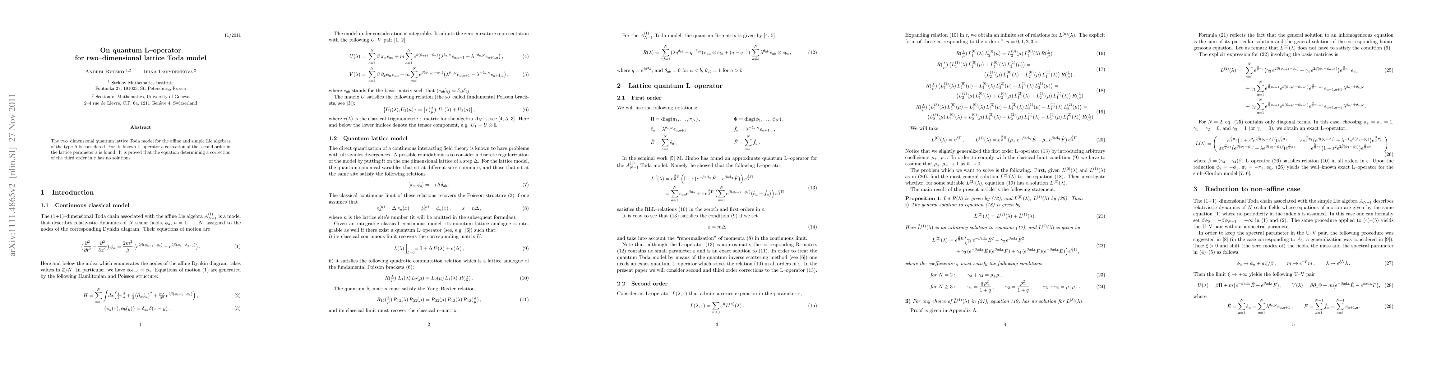 The two-dimensional quantum lattice Toda model for the affine and simple Lie algebras of the type A is considered. For its known L-operator a correction of the second order in the lattice parameter is found. It is proved that the equation determining a correction of the third order has no solutions.