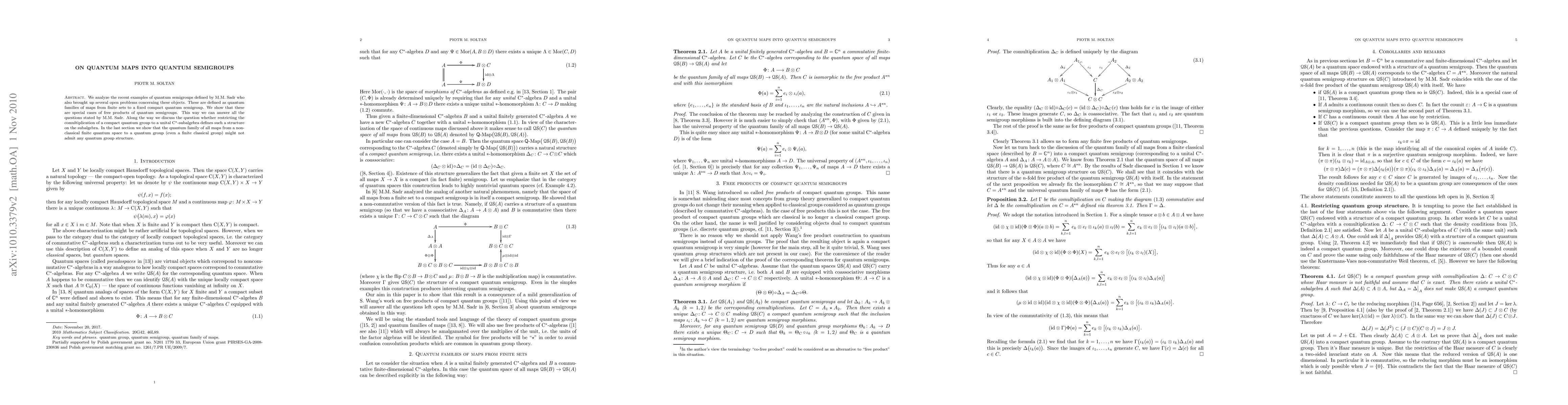 This paper examines quantum semigroups introduced by M.M. Sadr, showing they are special cases of free products of quantum semigroups. It resolves Sadr's open questions and discusses the implications of restricting comultiplication in compact quantum groups. The study concludes that not all quantum families of maps admit a quantum group structure.