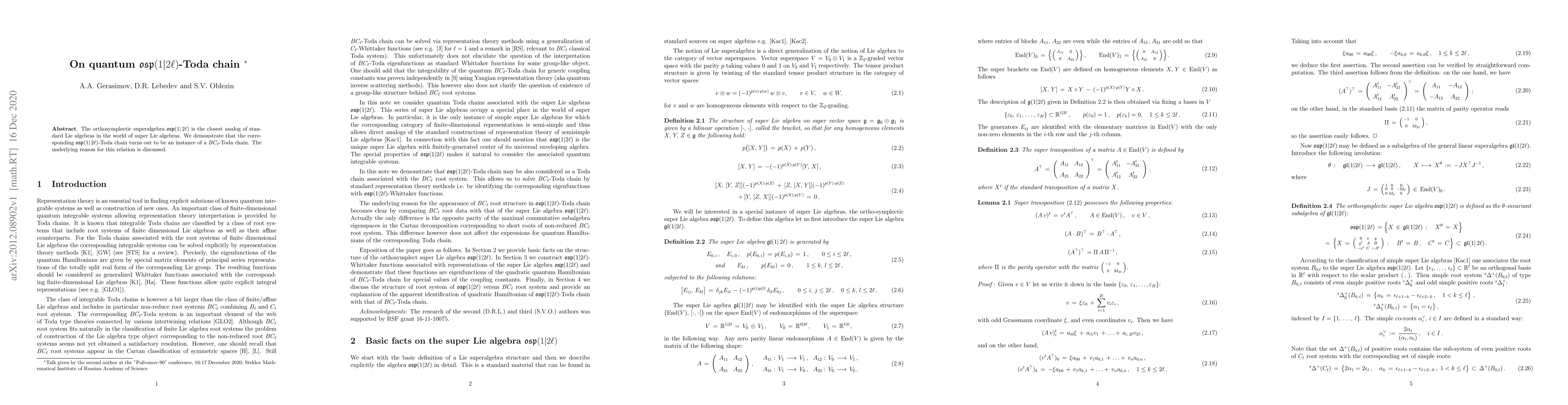 This paper explores the orthosymplectic super Lie algebra $\mathfrak{osp}(1|\,2\ell)$ and demonstrates that the associated $\mathfrak{osp}(1|\,2\ell)$-Toda chain is an instance of a $BC_\ell$-Toda chain, providing insight into the underlying reason for this relationship.