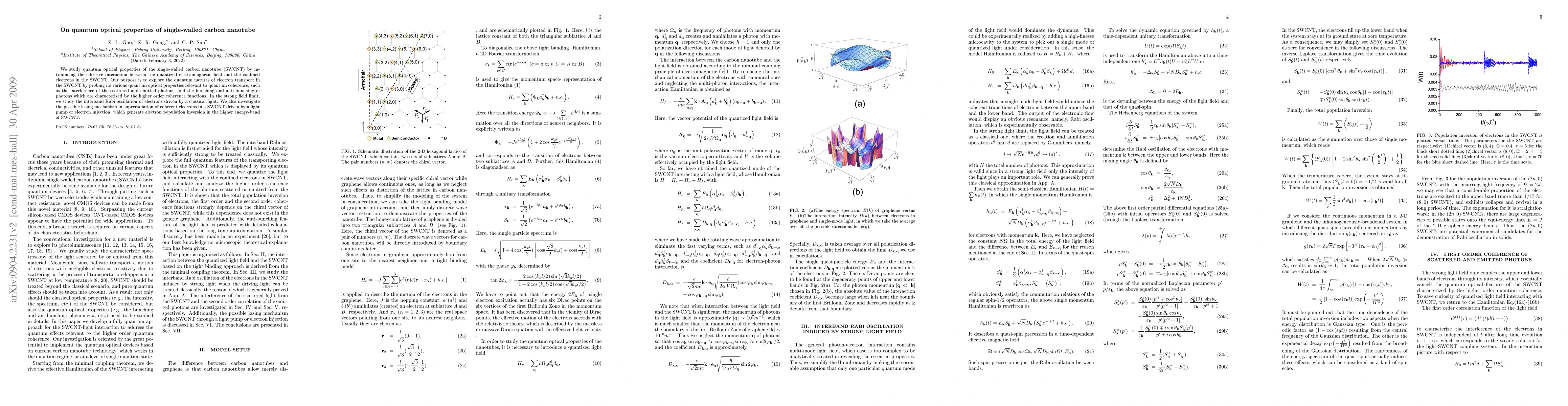 Researchers studied quantum optical properties of single-walled carbon nanotubes, exploring coherence and lasing mechanisms in these tiny tubes, which could lead to new technologies.
